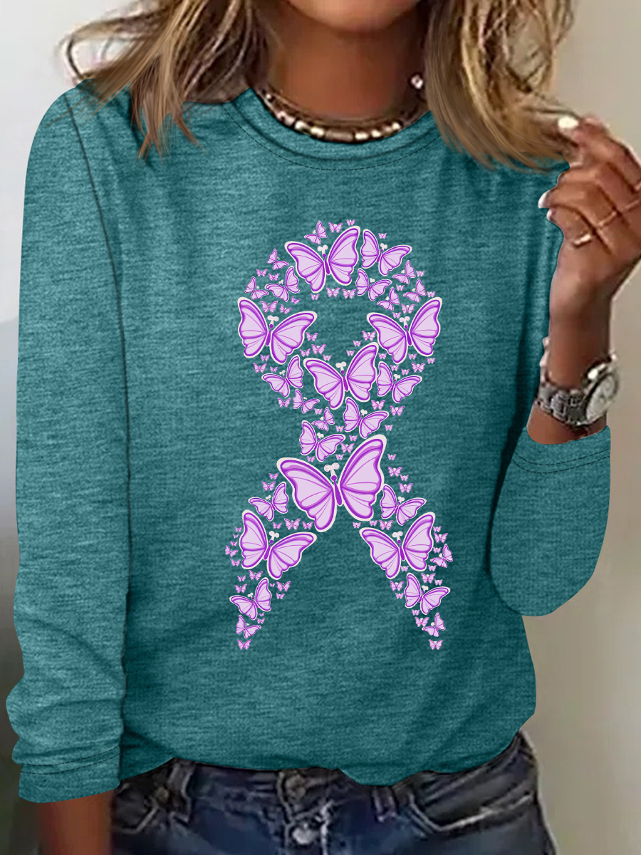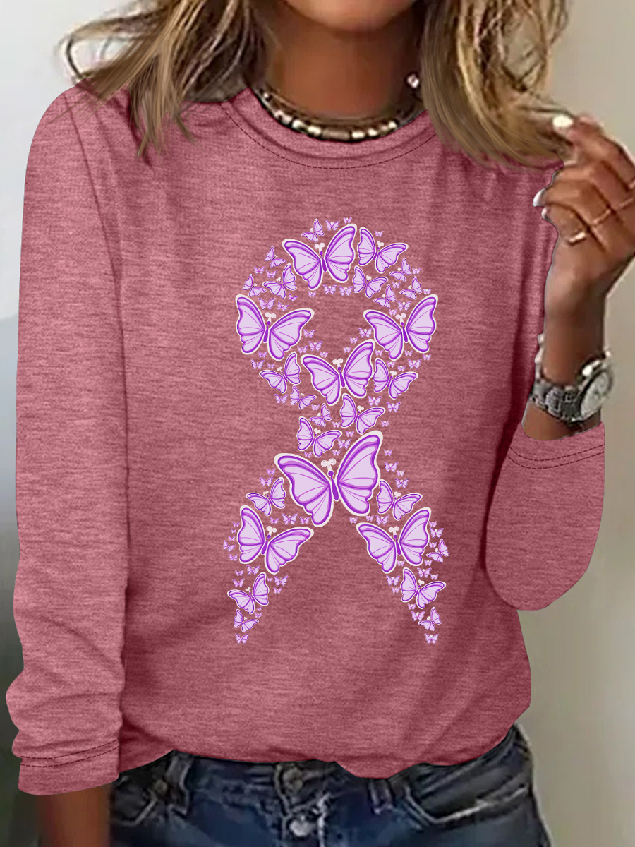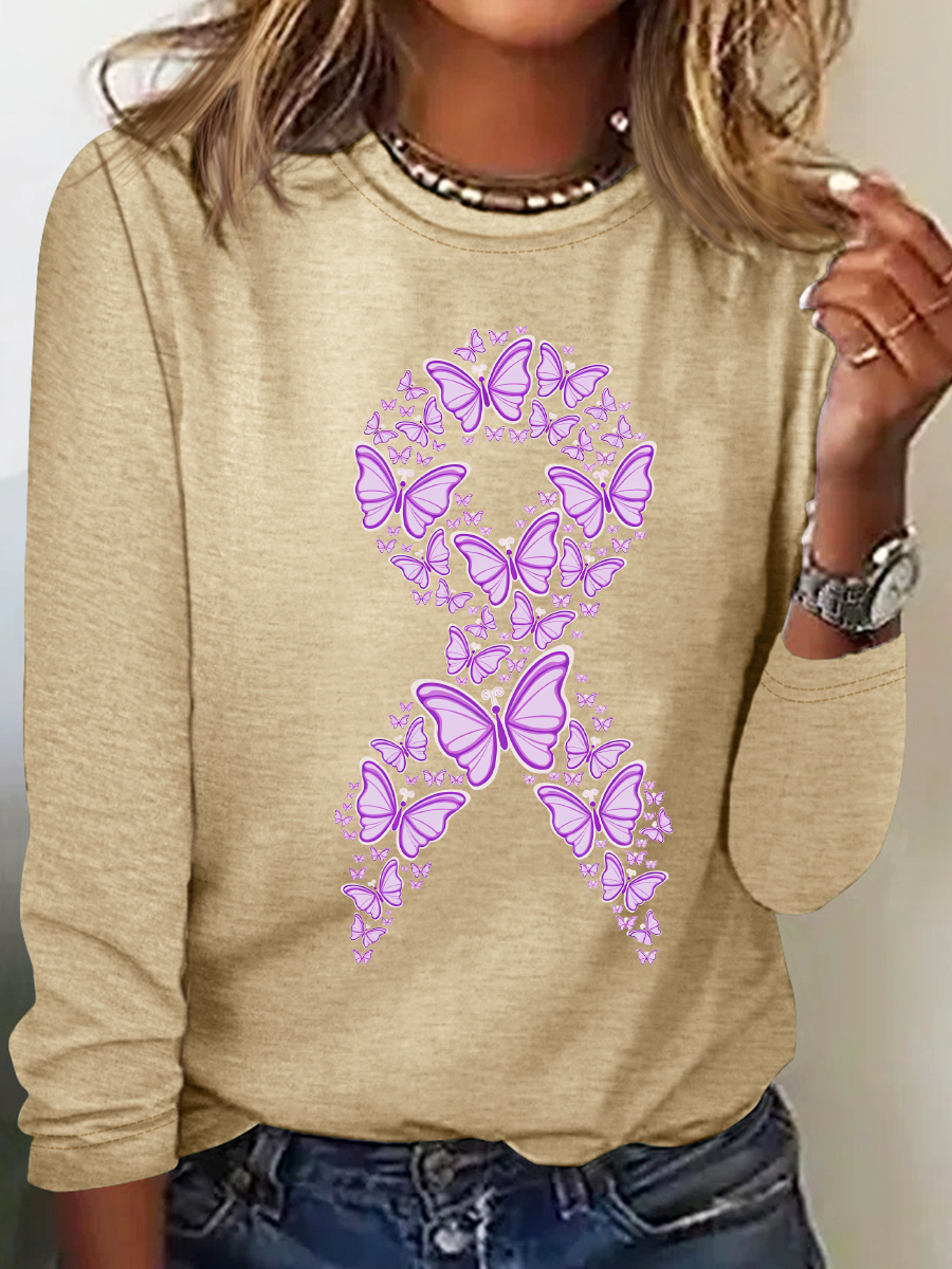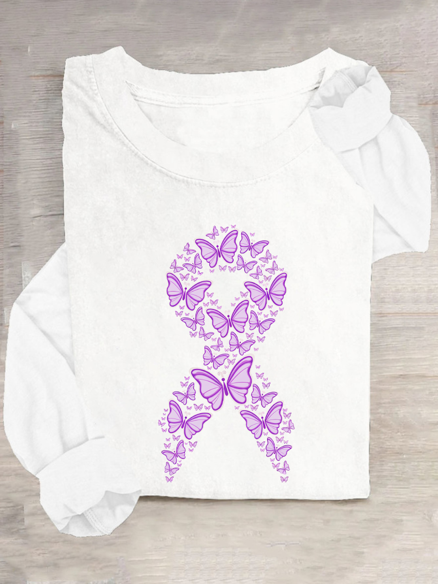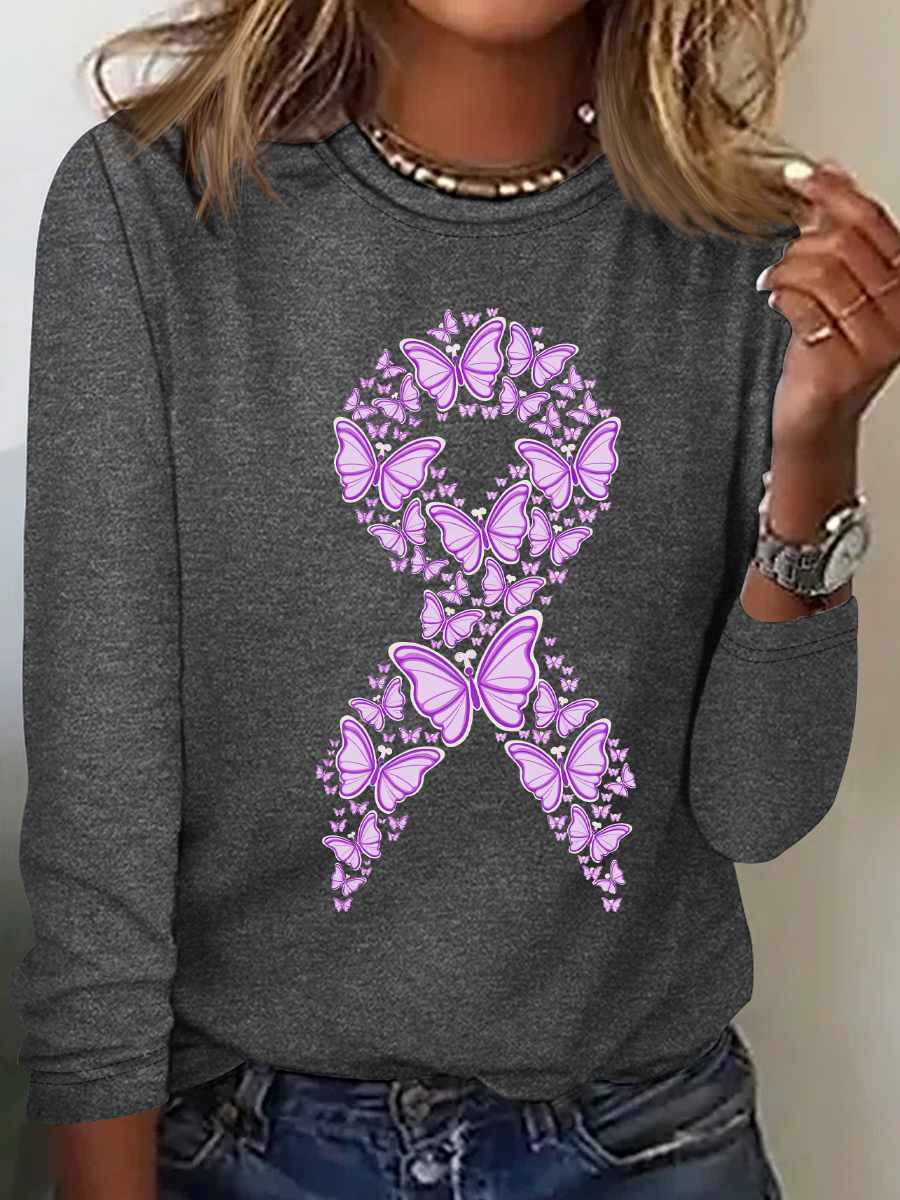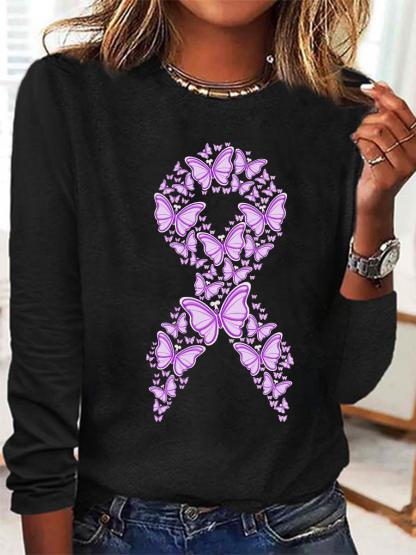 Purple Awareness Ribbon Casual Long Sleeve Shirt
