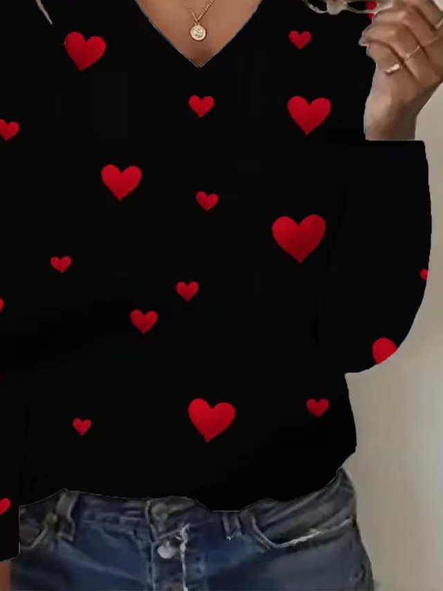Women's Long Sleeve T-shirt Spring/Fall Black Heart/Cordate Printing Jersey V Neck Daily Going Out Casual Top