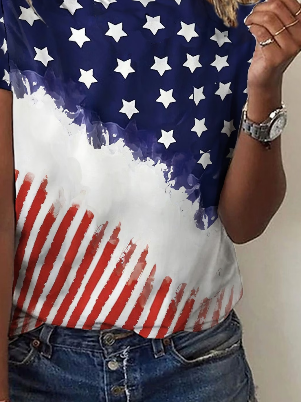 Women's Short Sleeve T-shirt Summer As Picture America Flag Printing Jersey Crew Neck Daily Going Out Casual Top
