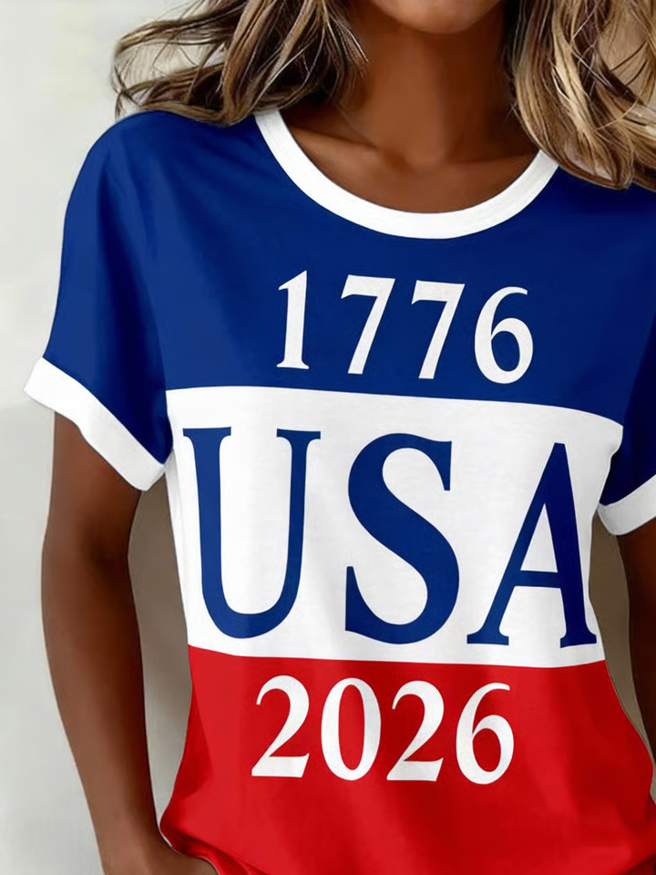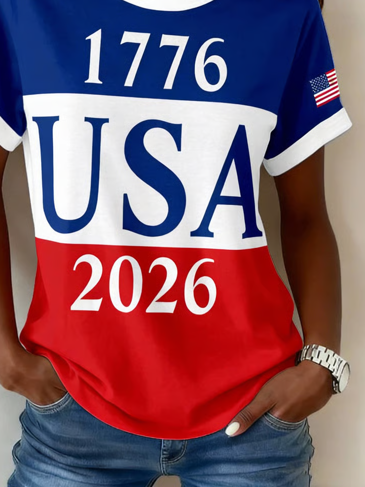 Women's Short Sleeve T-shirt Summer As Picture America Flag Printing Jersey Crew Neck Daily Going Out Casual Top