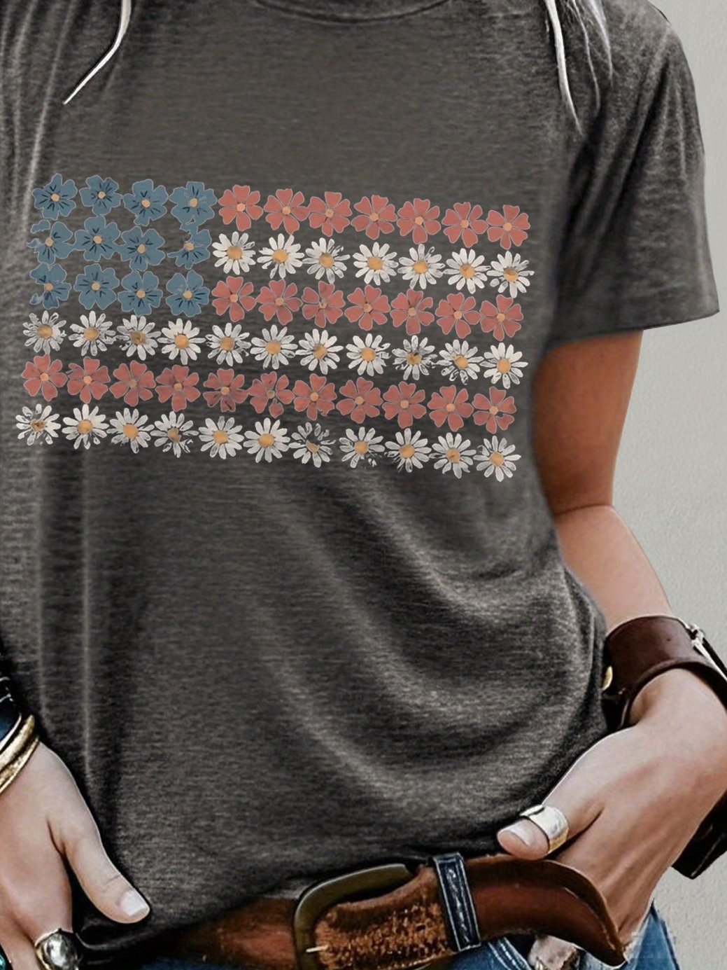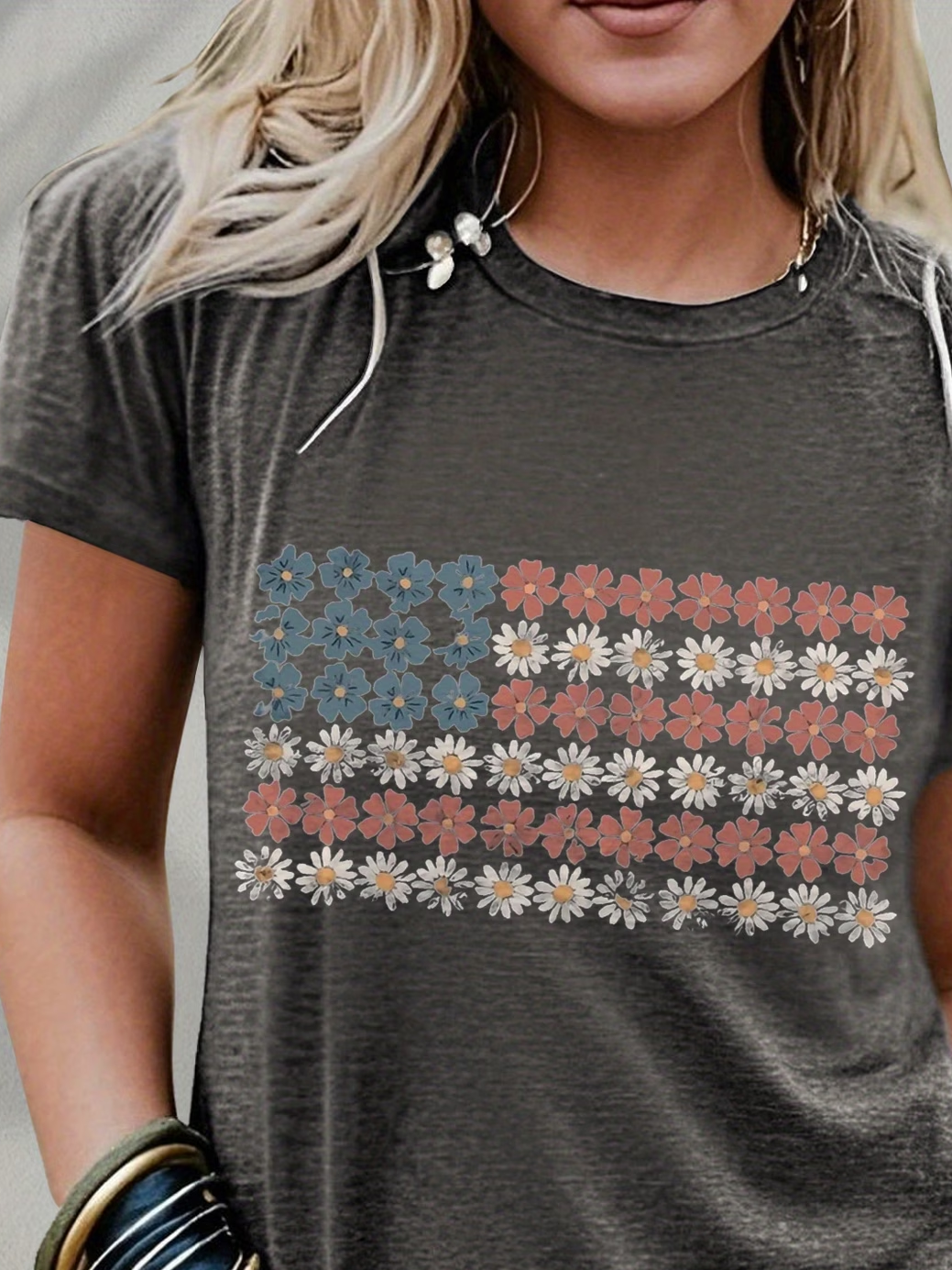 Women's Short Sleeve T-shirt Summer Gray America Flag Printing Jersey Crew Neck Daily Going Out Casual Top