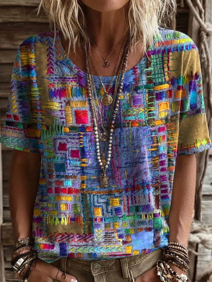 Women's Short Sleeve T-shirt Summer Purple Abstract Printing Jersey Crew Neck Daily Going Out Casual Top