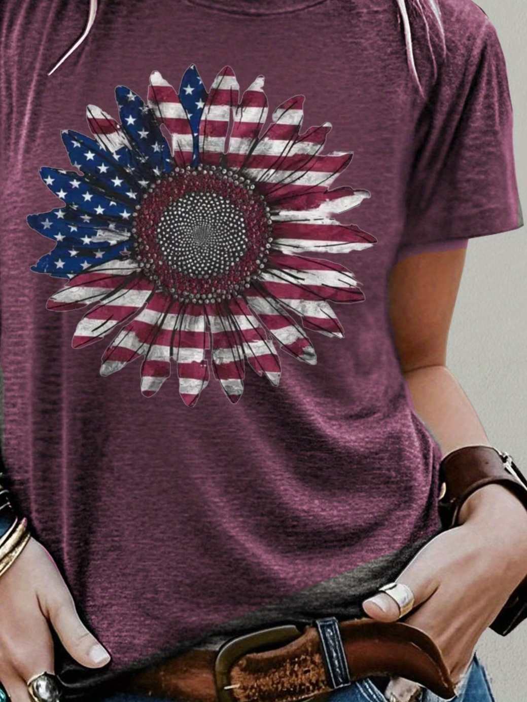 Women's Short Sleeve T-shirt Summer Purple America Flag Printing Jersey Crew Neck Daily Going Out Casual Top