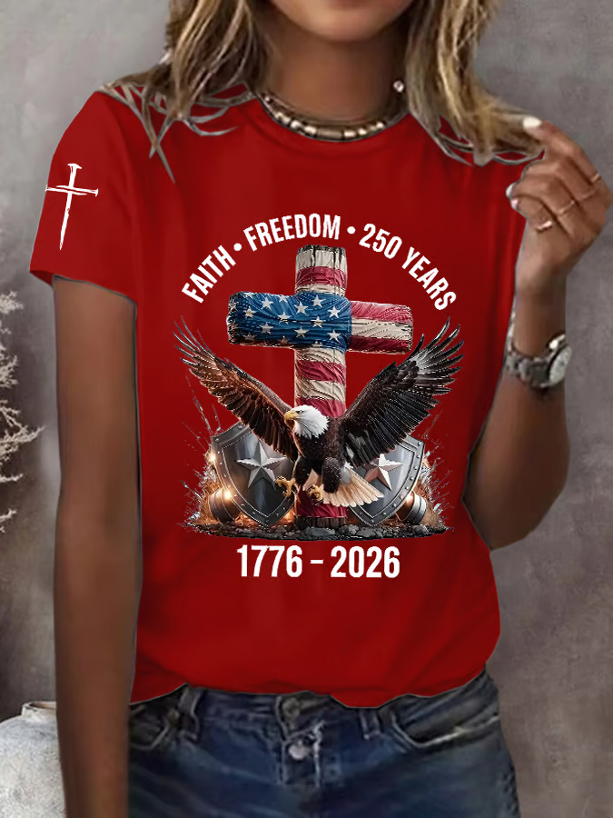 Women's Short Sleeve T-shirt Summer Red America Flag Printing Jersey Crew Neck Daily Going Out Casual Top