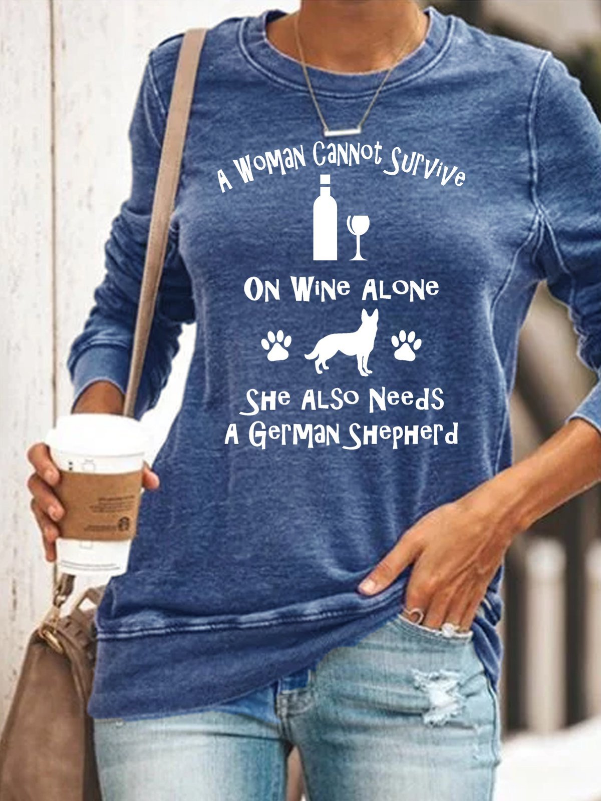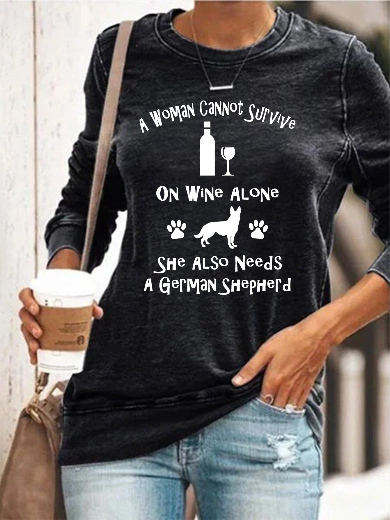 A Woman Cannot Survive On Wine Alone She Also Needs A German Shepherd Sweatshirts