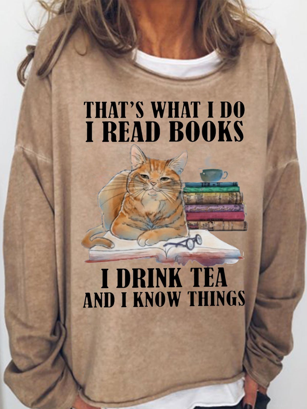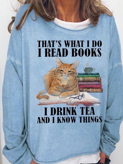Women's Funny I Read Books I Drink Tea And I Know Things Casual Sweatshirt