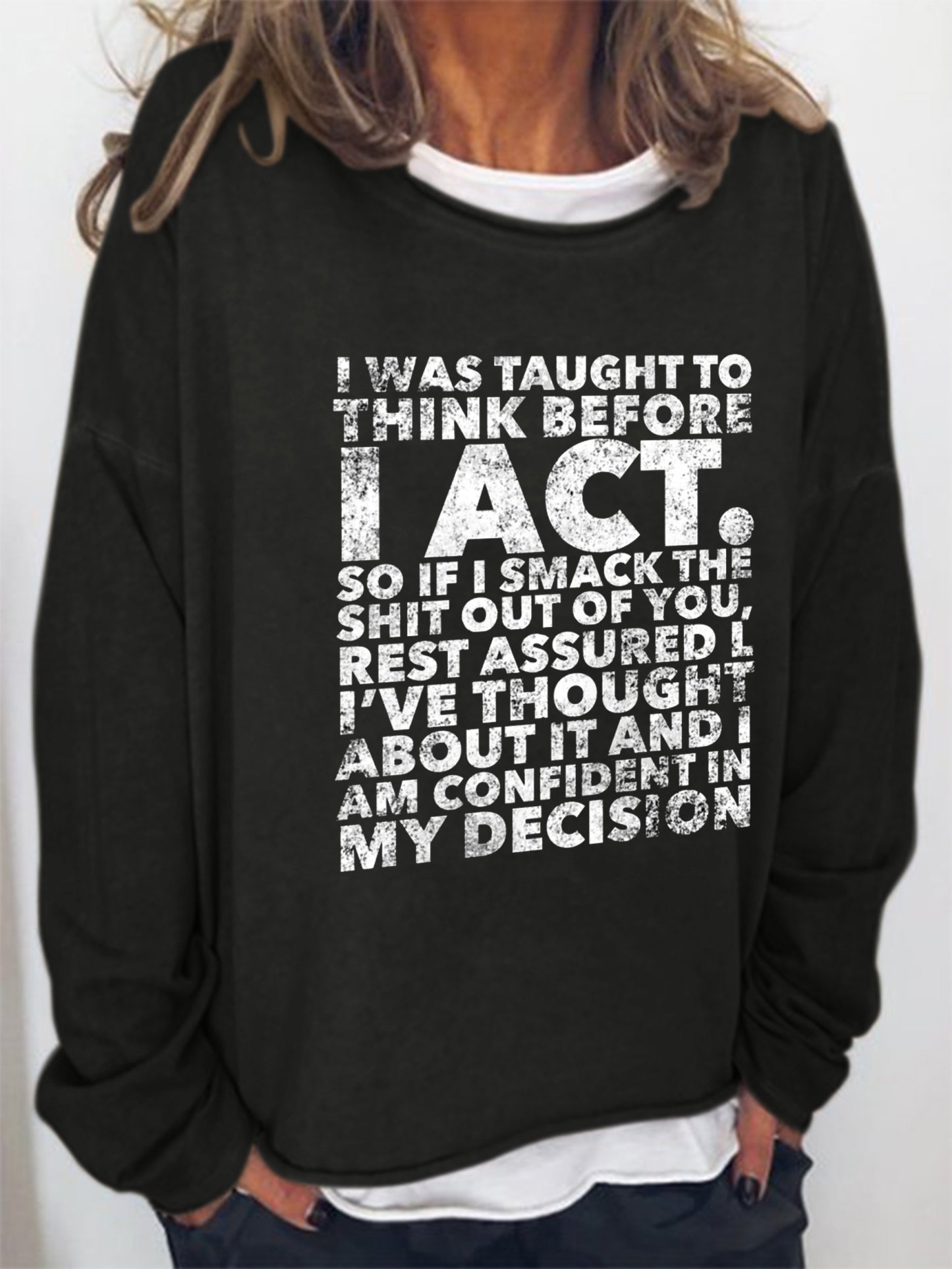 Funny text print round neck long-sleeved Sweatshirts