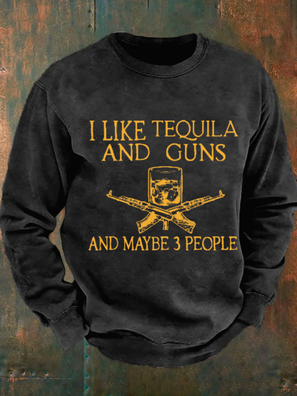 I Like Tequila And Guns And Maybe 3 People Men's Casual Sweatshirt