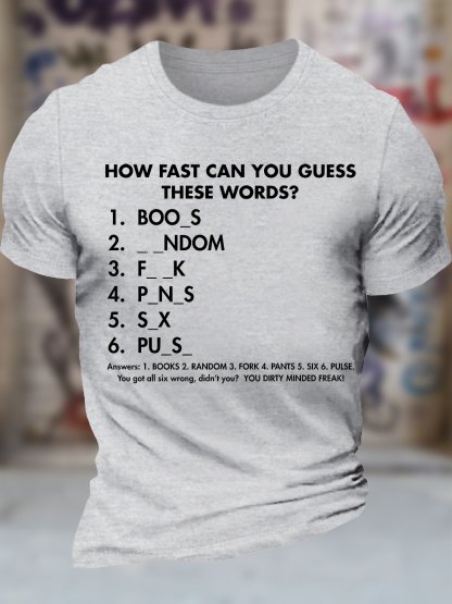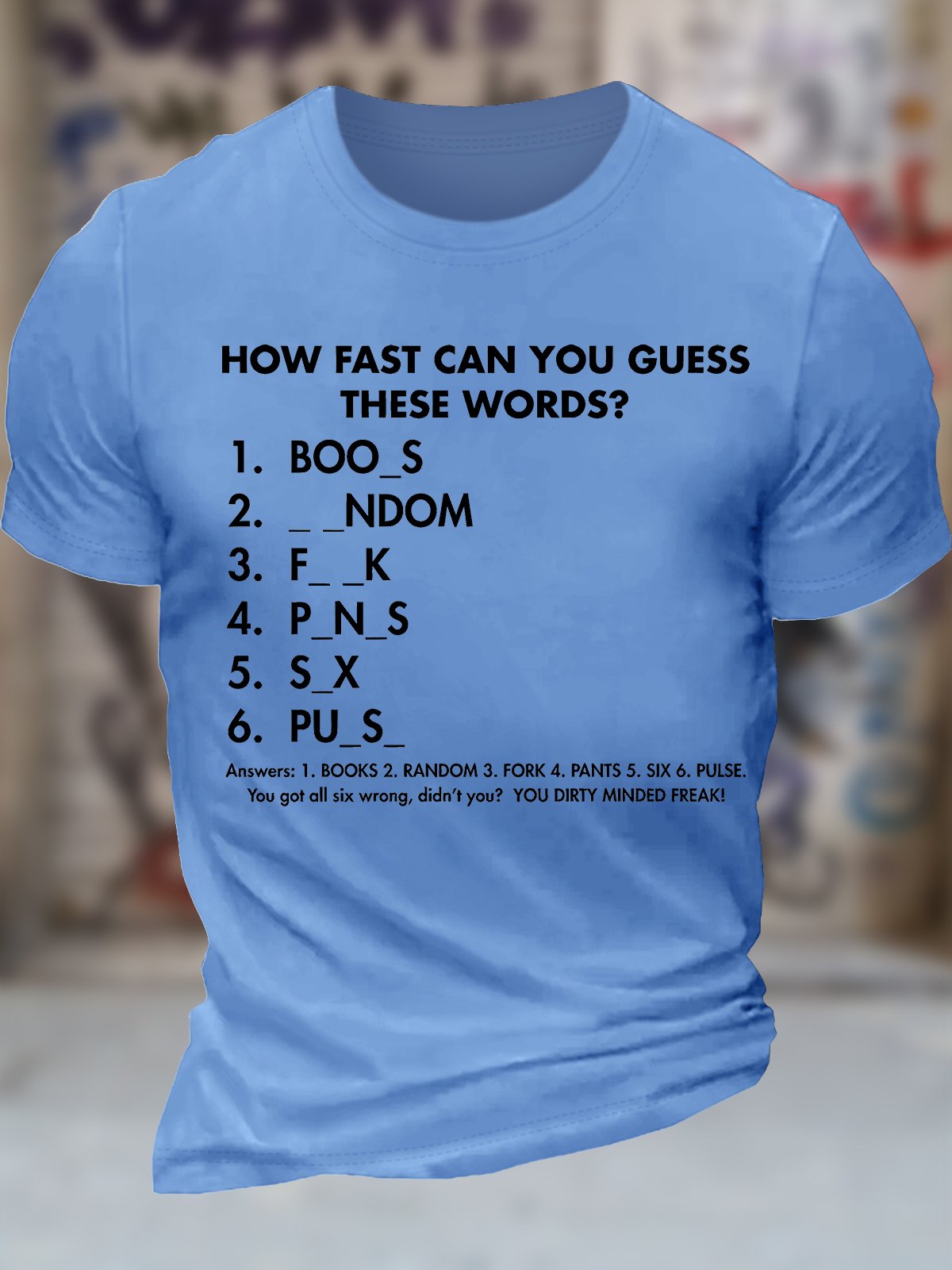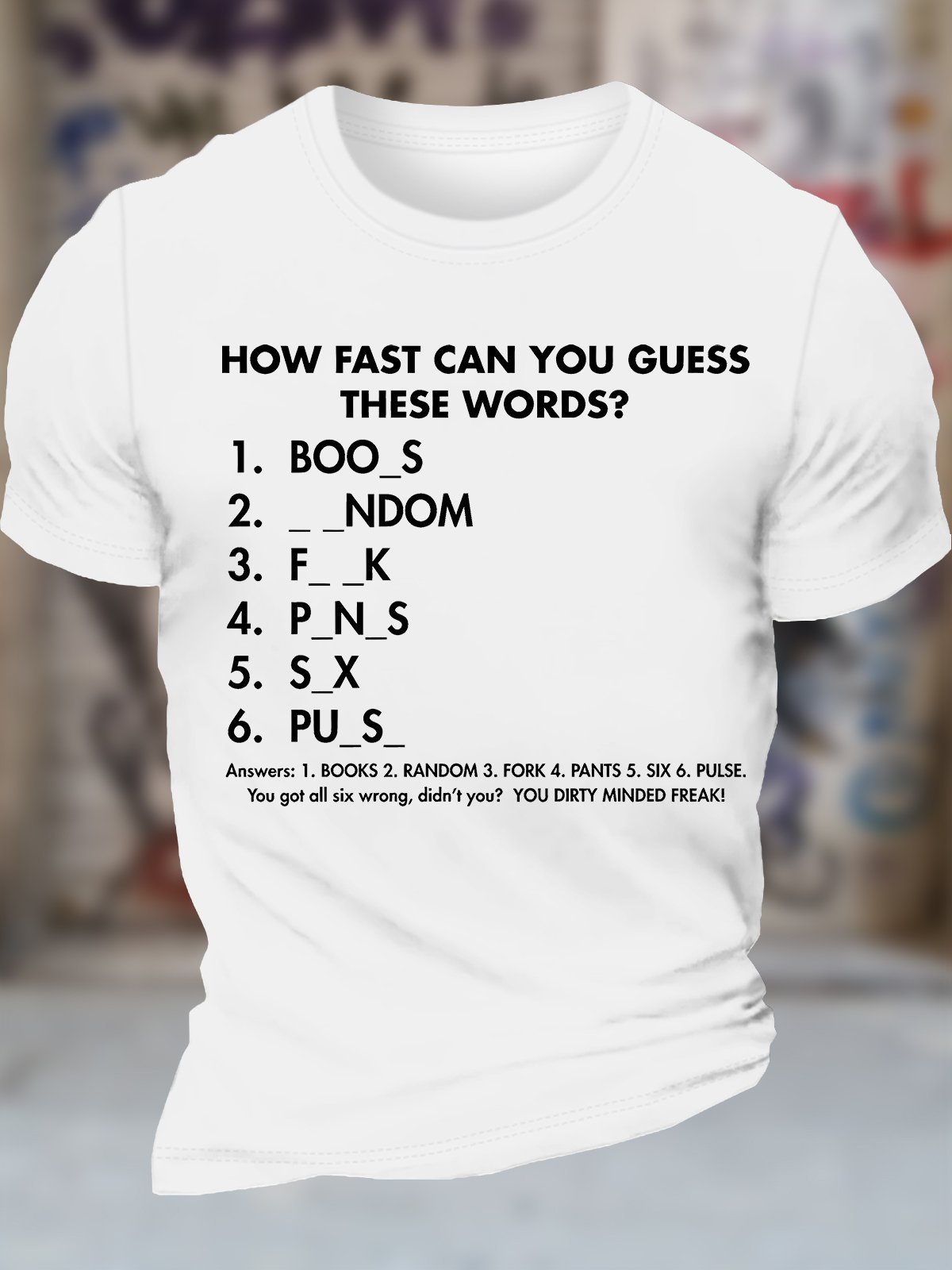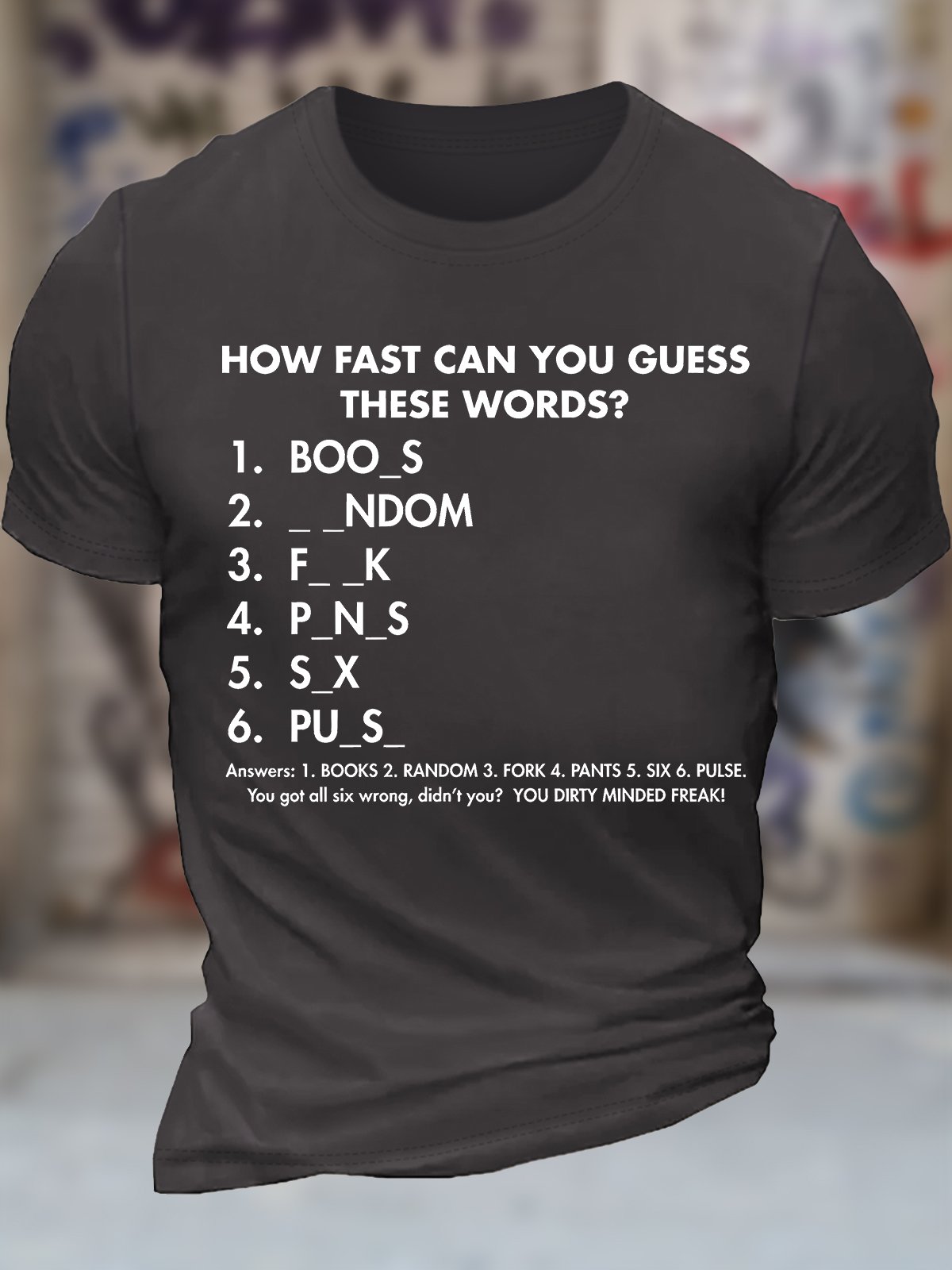 Men's How Fast Can You Guess These Words Books Random Fork Pants Six Pulse You Got All Six Wrong Didn't You You Dirty Minded Freak Funny Graphic Printing Casual Cotton Crew Neck T-Shirt