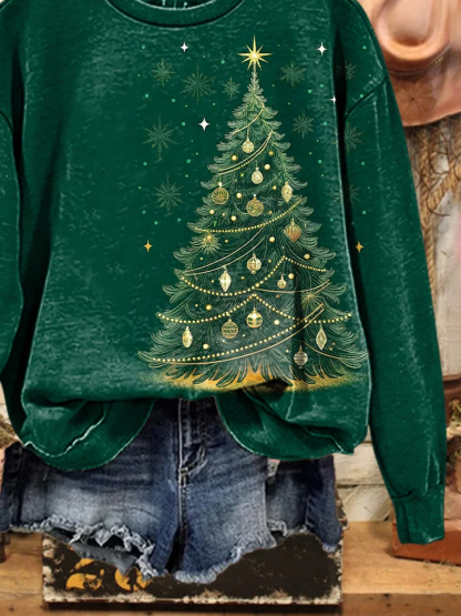 Printing Casual Christmas Tree Sweatshirt