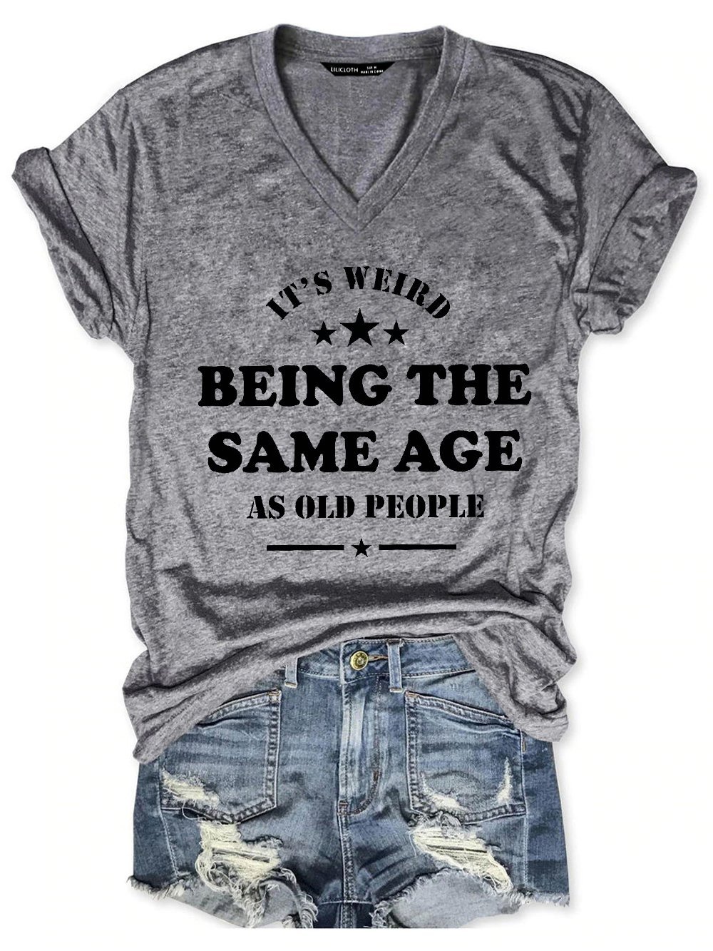 Casual Funny Printed Short Sleeve V Neck Short Sleeve T-shirt