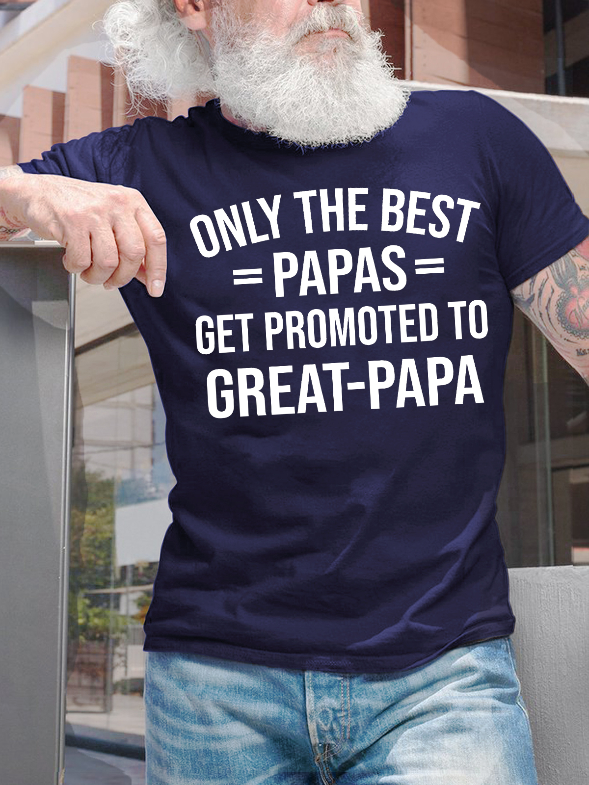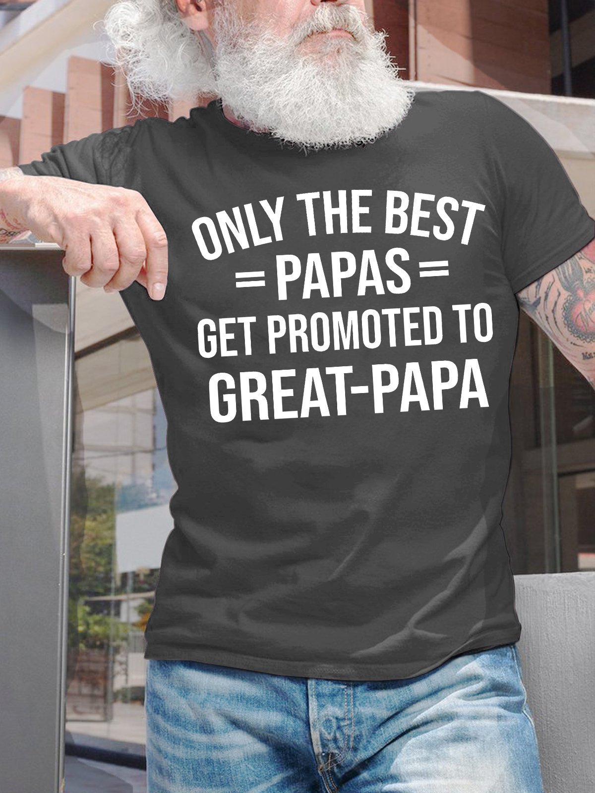 Men's Only The Best Papas Get Promoted To Great Papa Funny Graphic Print Text Letters Crew Neck Casual Cotton T-Shirt