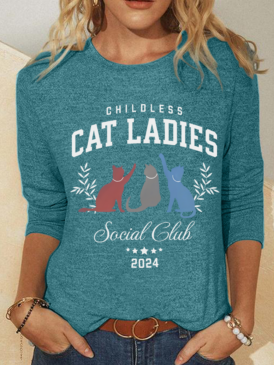 Childless Cat Lady Print Casual Long Sleeve Shirt