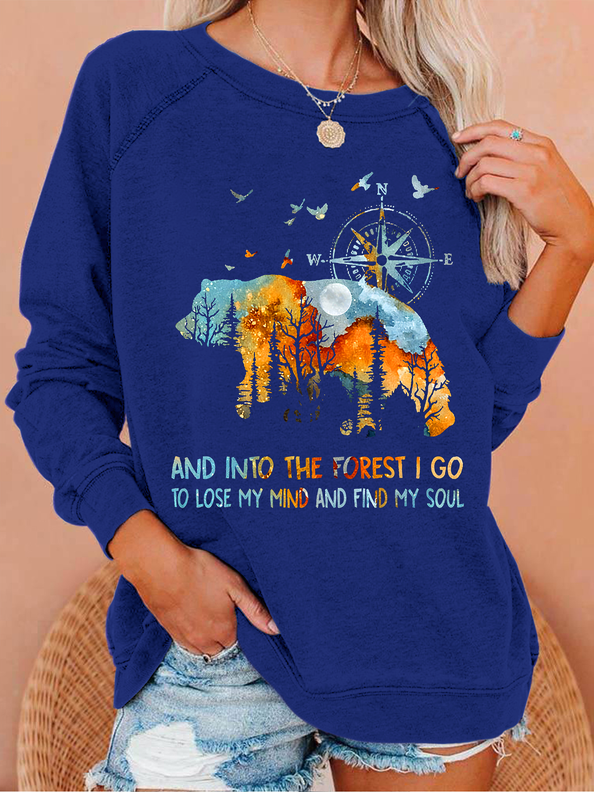 Into The Forest I Go bear Casual Text Letters Crew Neck Sweatshirt