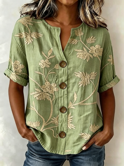 Loose Stand Collar Simple Linen Blend Shirt