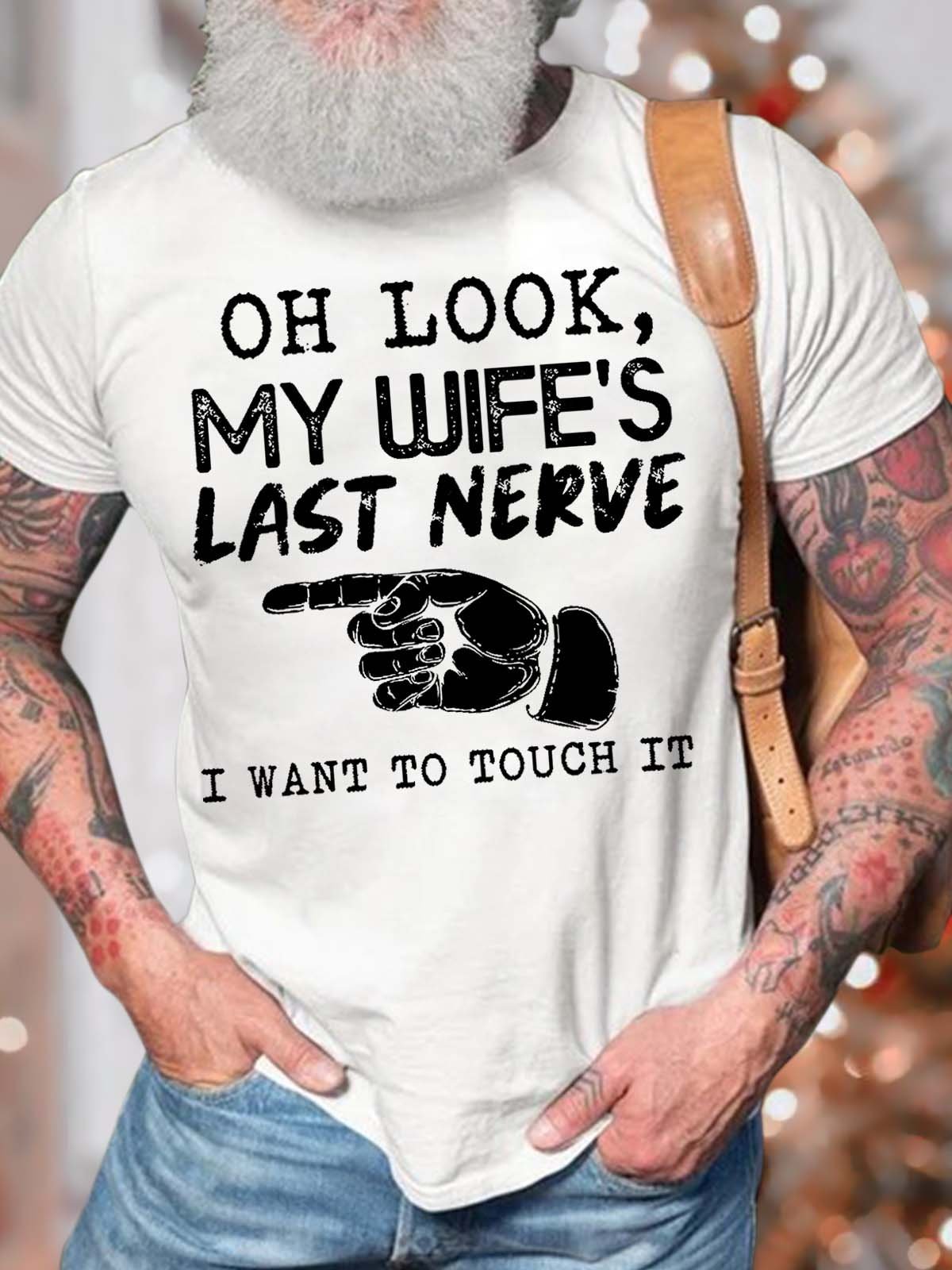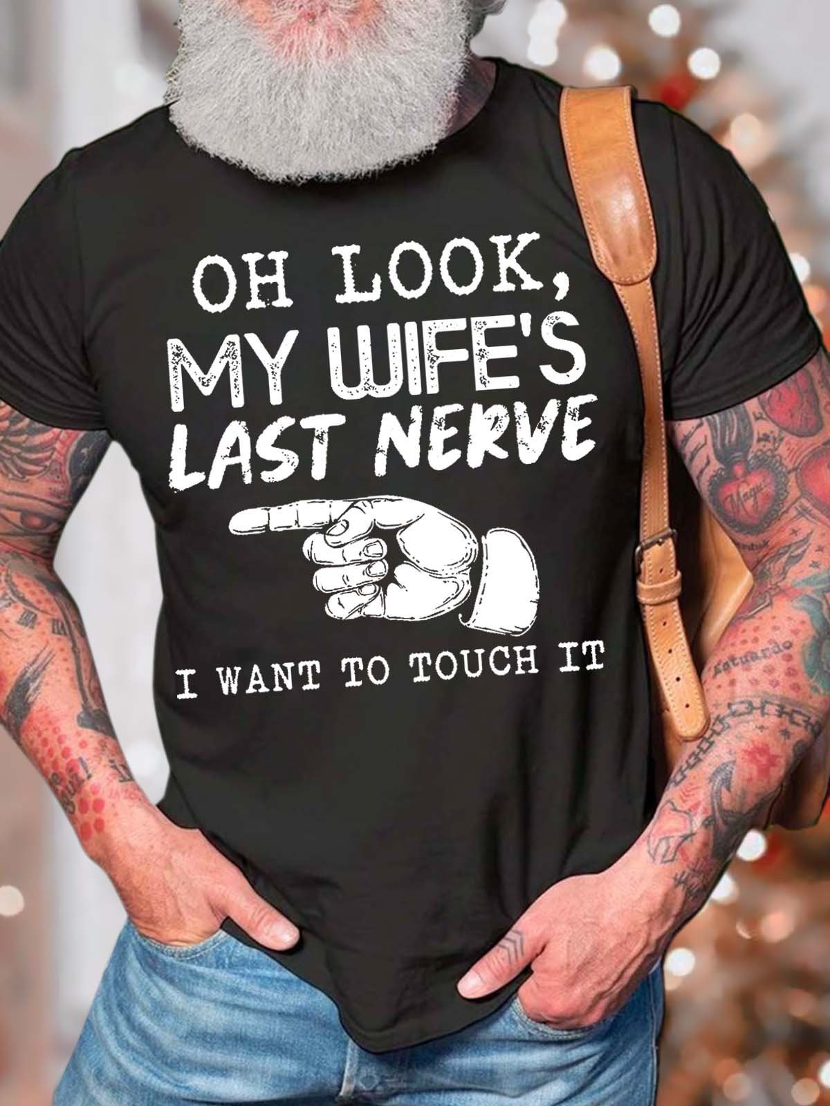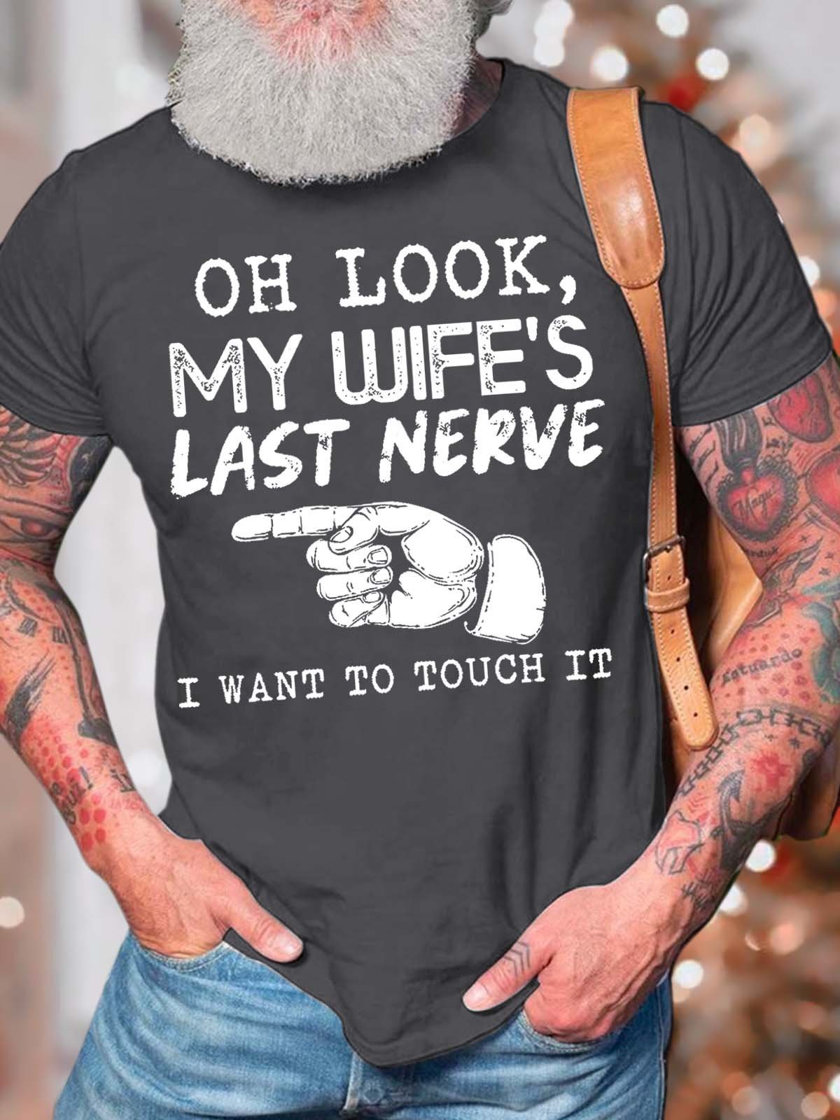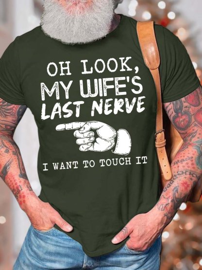 Men’s Oh Look My Wife’s Last Nerve I Want To Touch It Casual Regular Fit T-Shirt
