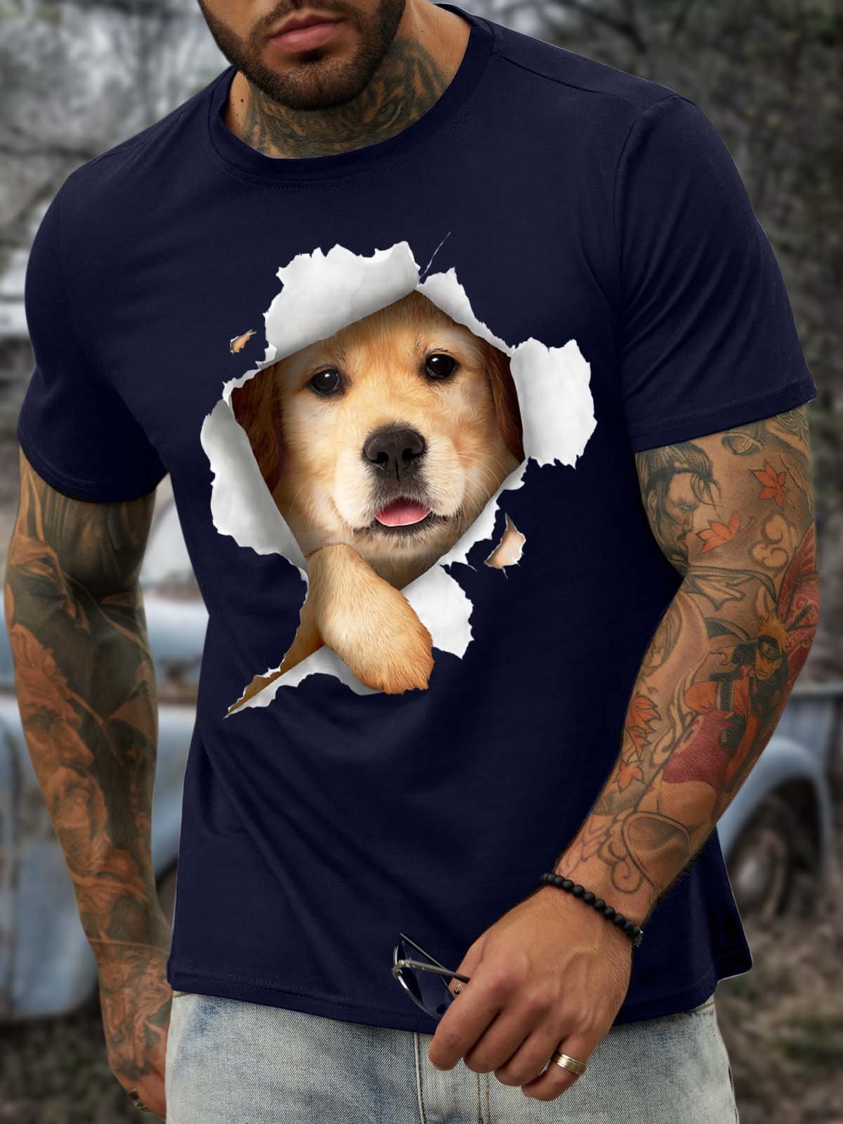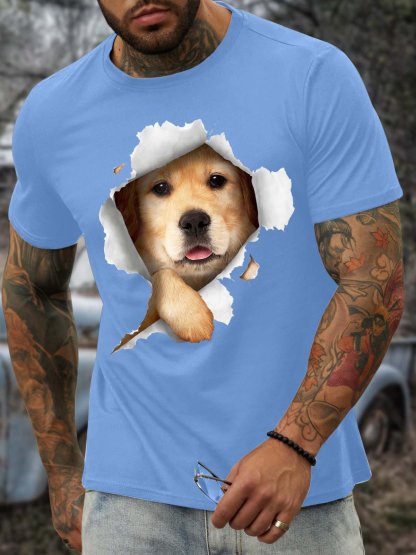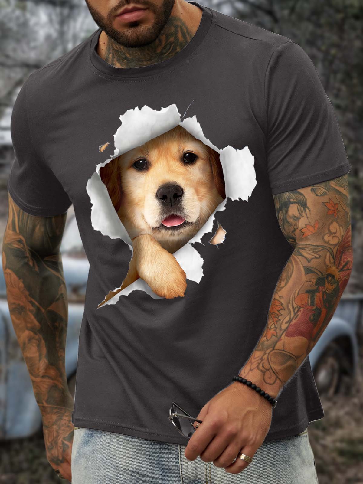 Men’s Dog Animal Pattern Cotton Text Letters Casual T-Shirt