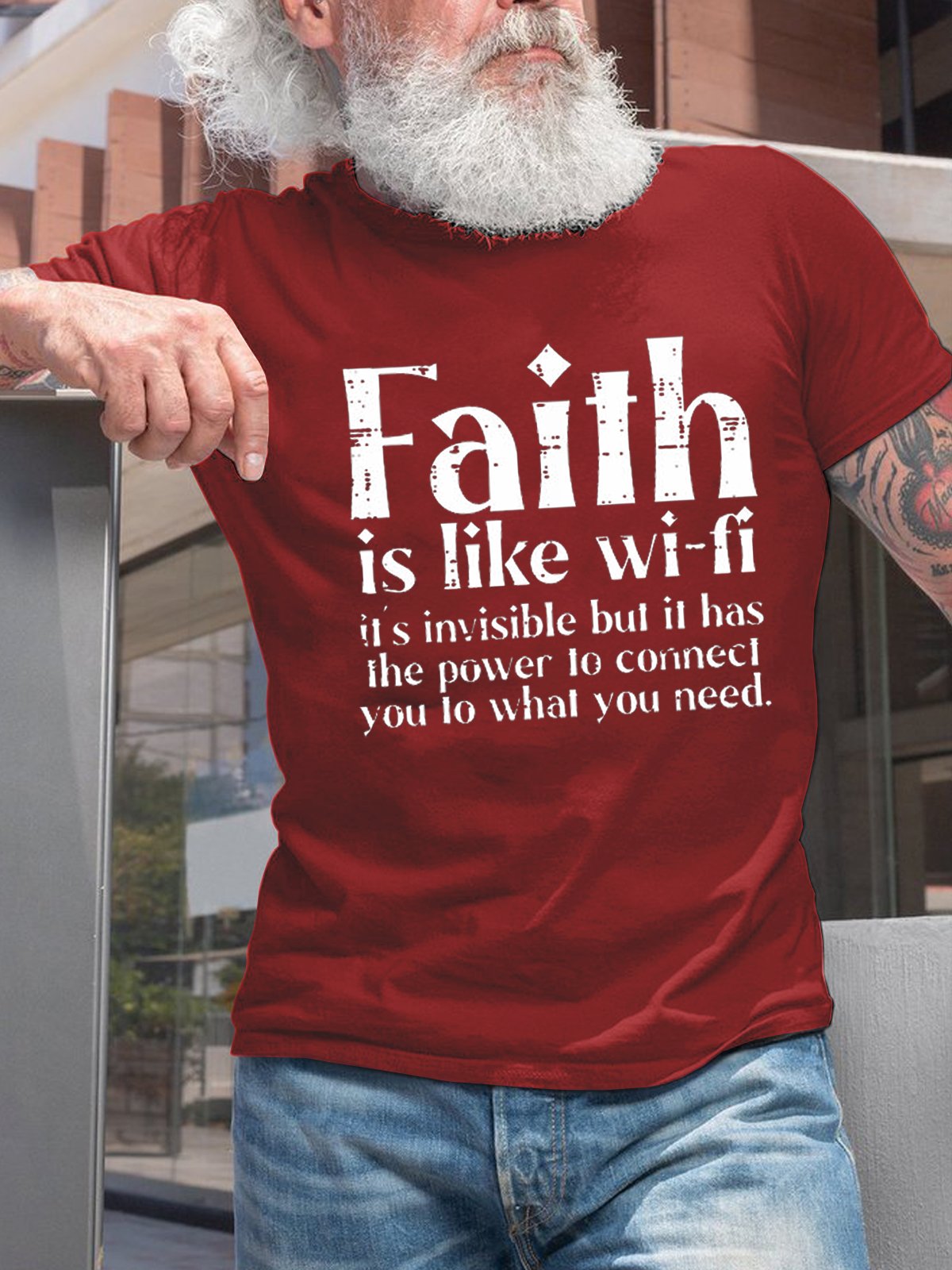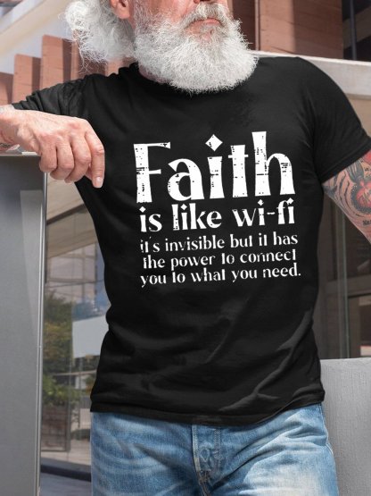 Men's Faith Is Like Wifi Casual Cotton T-Shirt