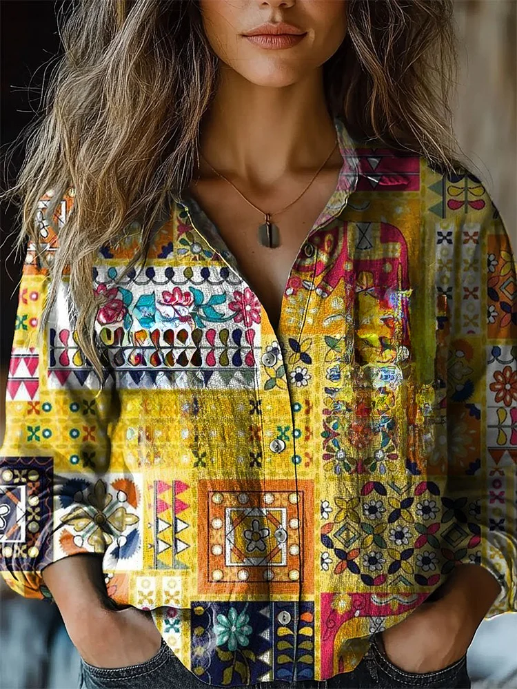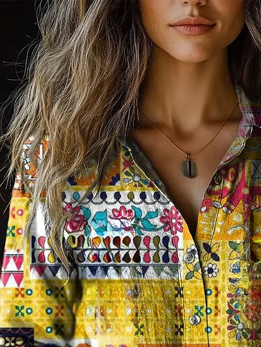 Women's Ethnic Floral Art Print Long Sleeve Shirt