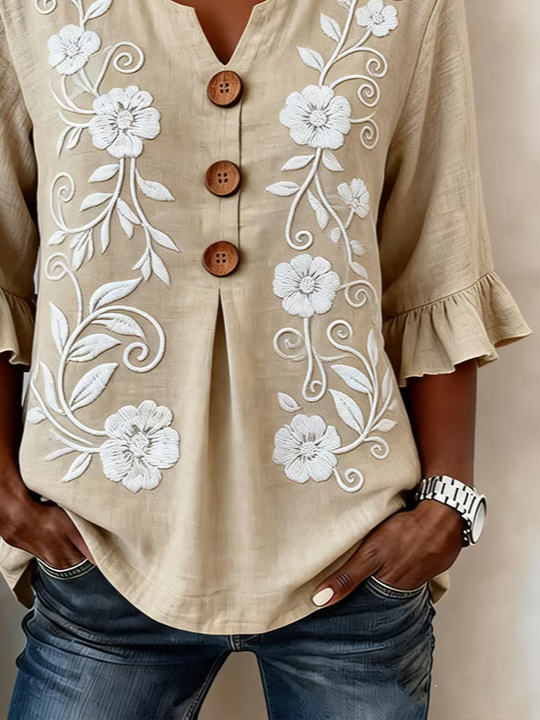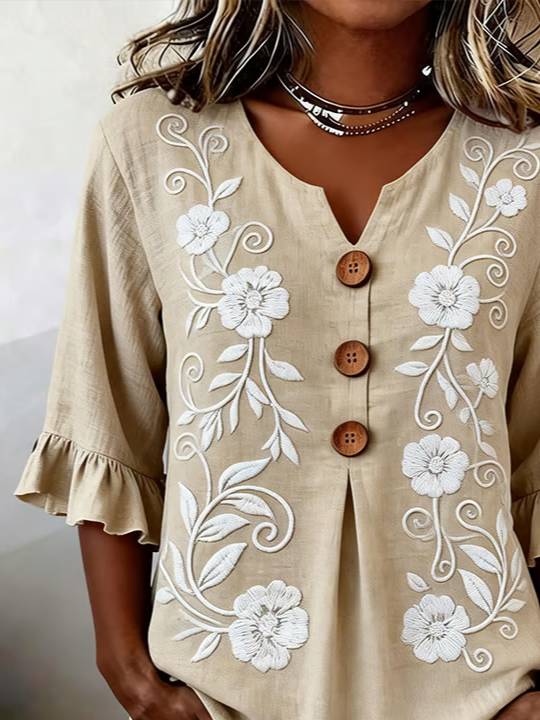 Women's Half Sleeve Blouse Summer Light Khaki Floral Printing V Neck Daily Going Out Vintage Top