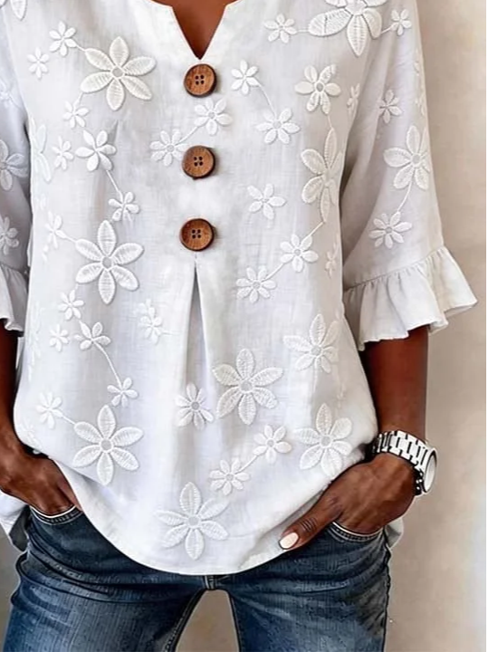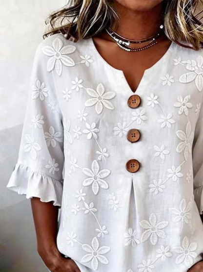 Women's Half Sleeve Blouse Summer White Floral Printing V Neck Daily Going Out Vintage Top