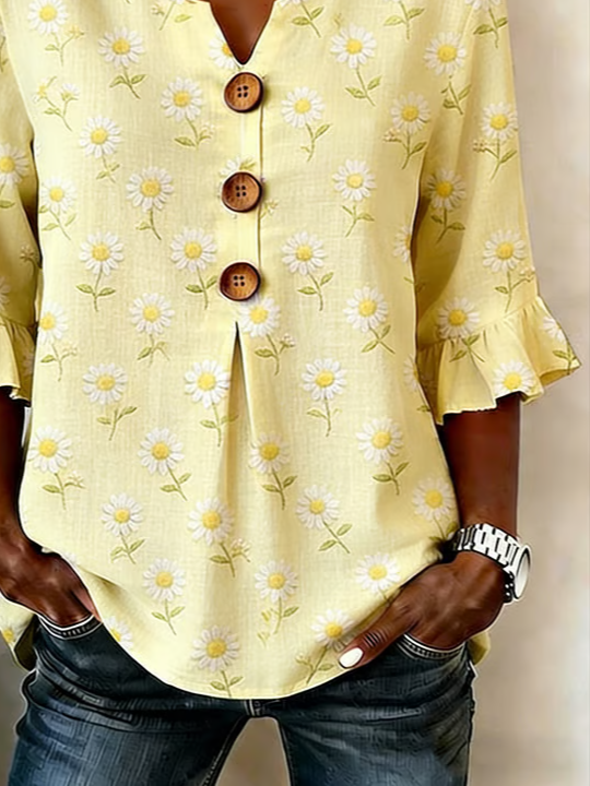 Women's Half Sleeve Blouse Summer Yellow Floral Printing V Neck Daily Going Out Vintage Top