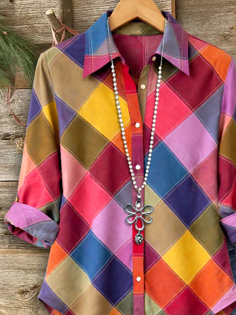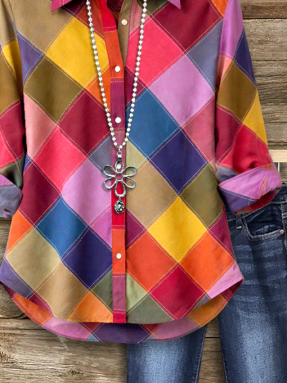 Women's Long Sleeve Shirt Spring/Fall As Picture Multicolor Block Buckle Shirt Collar Regular Sleeve Daily Going Out Casual Top