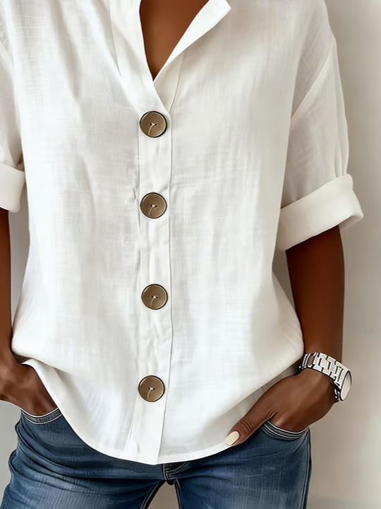 Women's Long Sleeve Shirt Spring/Fall White Plain Buckle Stand Collar Daily Going Out Casual Top