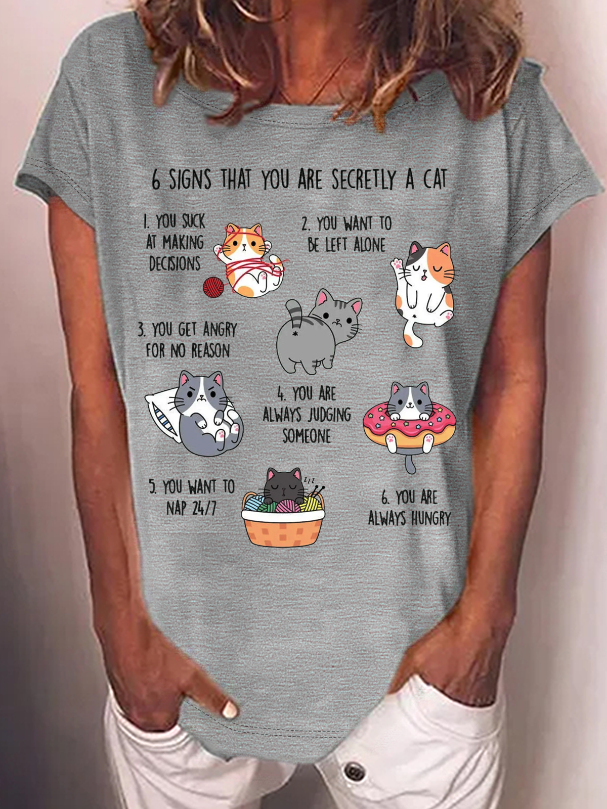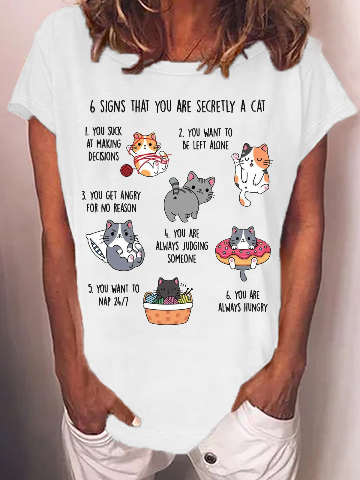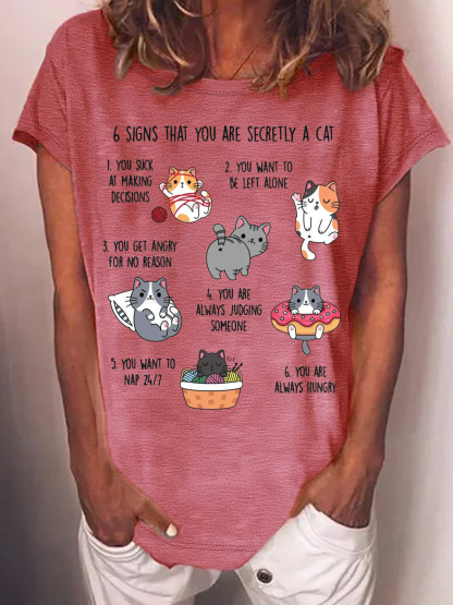 Women's Six Signs That You Are Secretly A Cat Text Letters T-Shirt