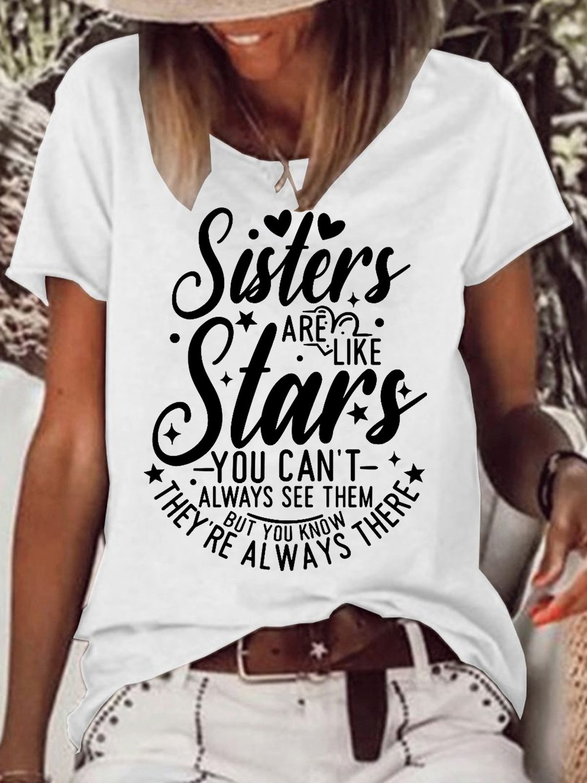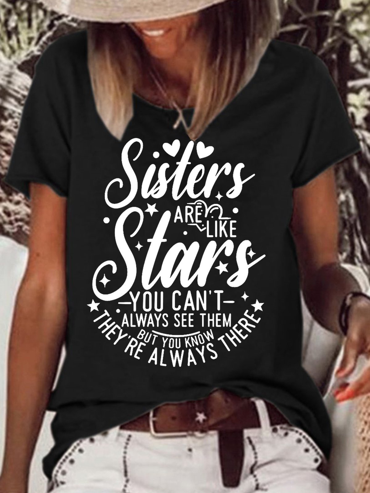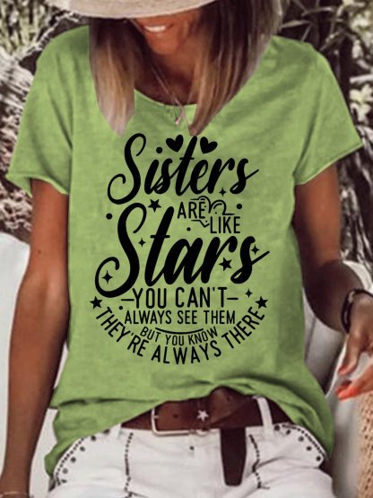 Womens Funny Sisters Crew Neck Casual T-Shirt