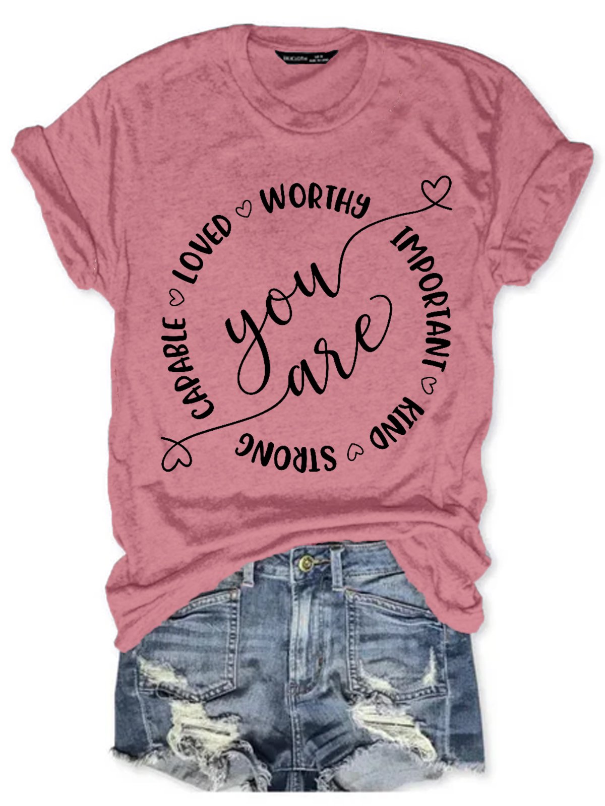 Womens Inspired Positive letter Print Casual Cotton T-Shirt