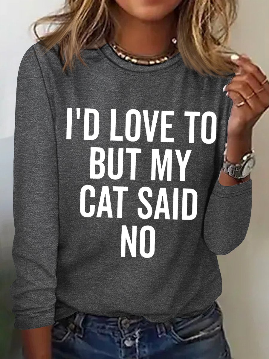 Women’s Funny Word I'd Love To But My Cat Said No Cotton-Blend Long Sleeve Top