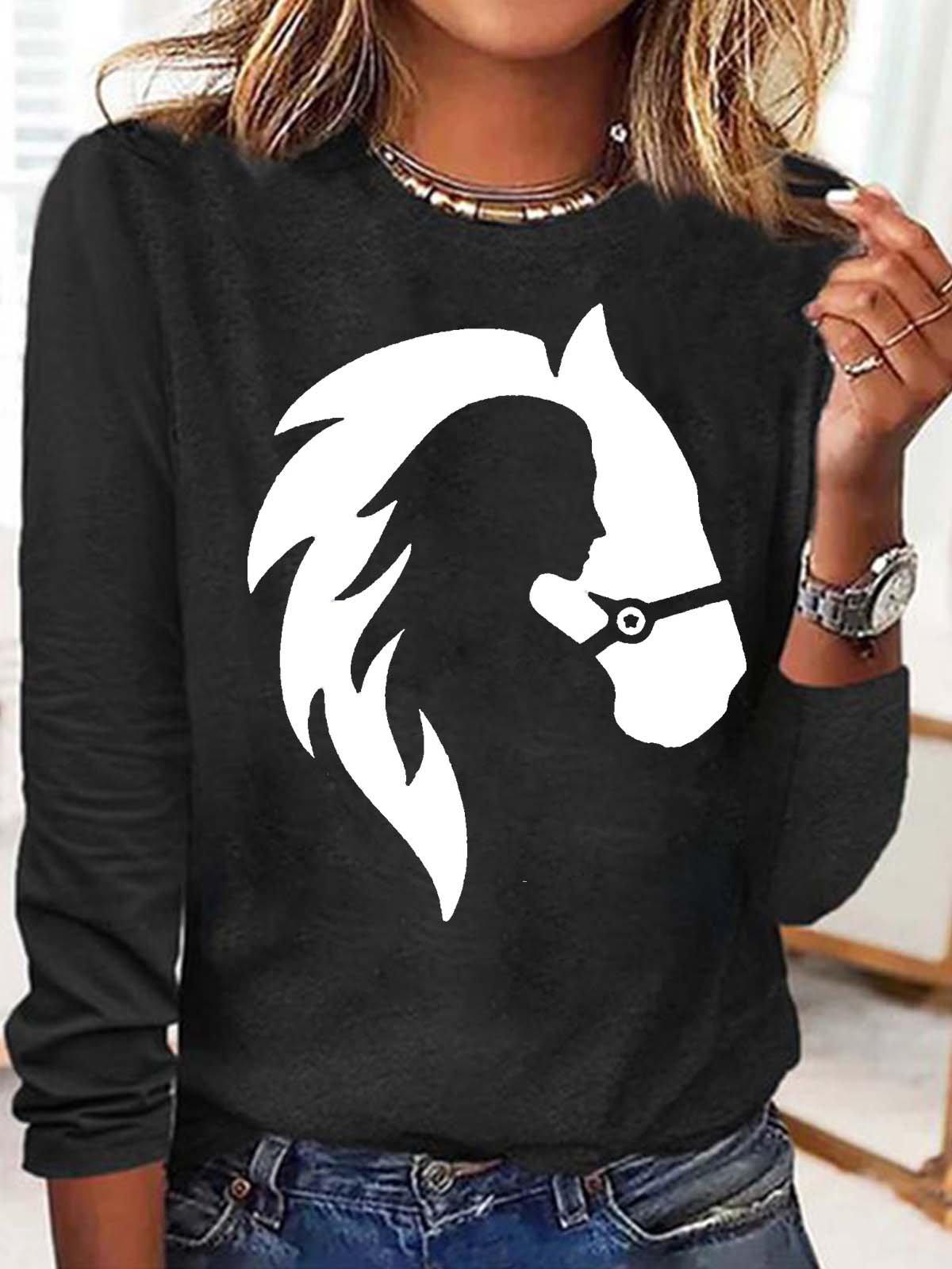 Women's Funny Horse And Girl You Are My Happy Place Print Letters Casual Top