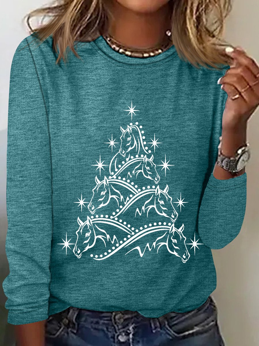 Women's Horse Tree Simple Crew Neck Regular Fit Cotton-Blend Top