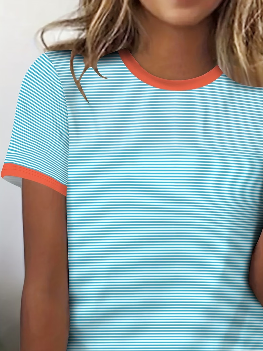 Cotton-Blend Crew Neck Casual Striped T-Shirt