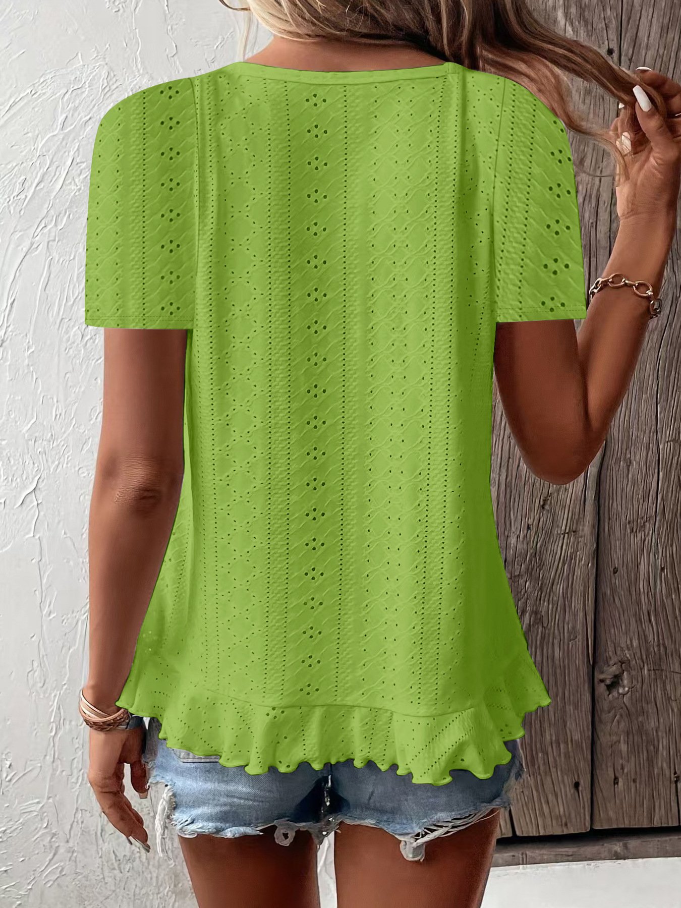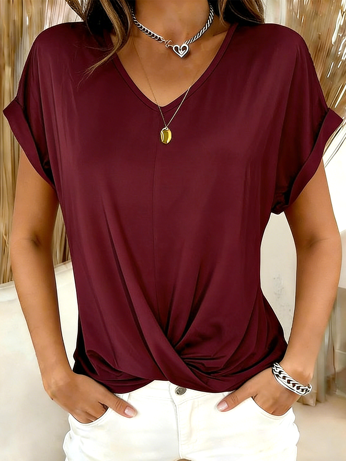 Elegant V Neck Gradient Pattern Linen Blend T-Shirt