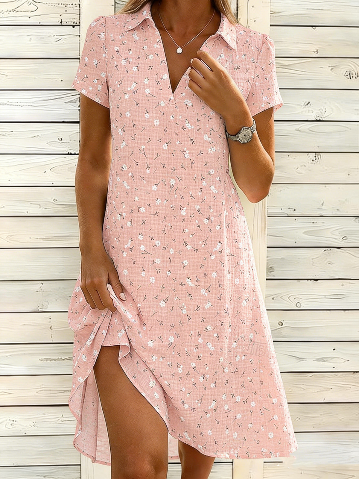 Shawl Collar Casual Loose Floral Shirt Dress With No