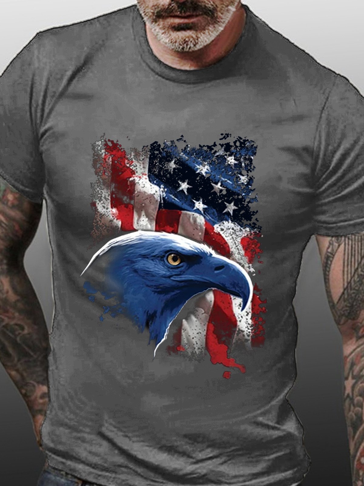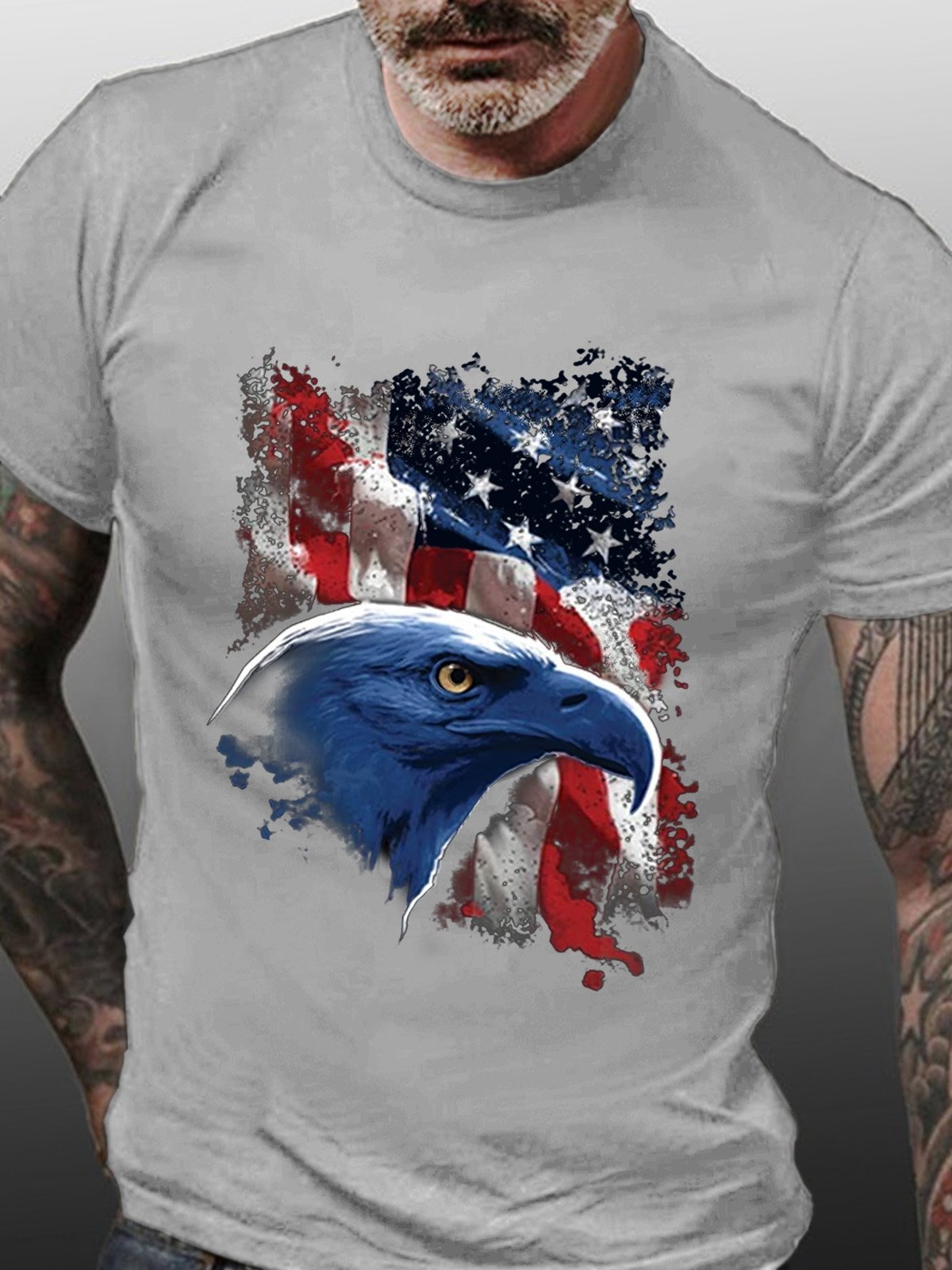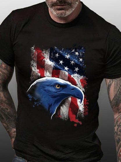 America Flag Men's Vintage Crew Neck Cotton T-Shirt