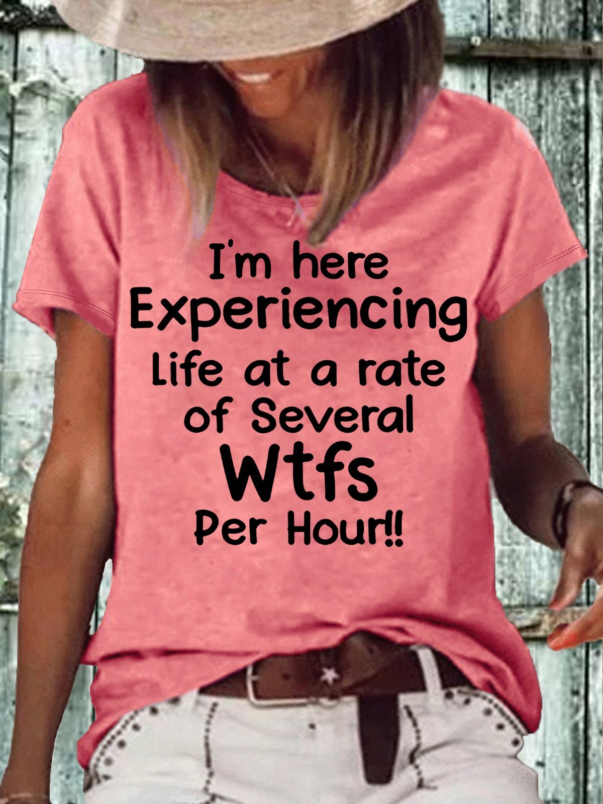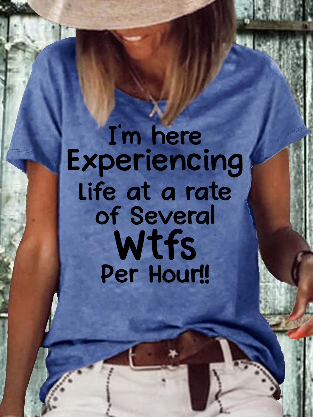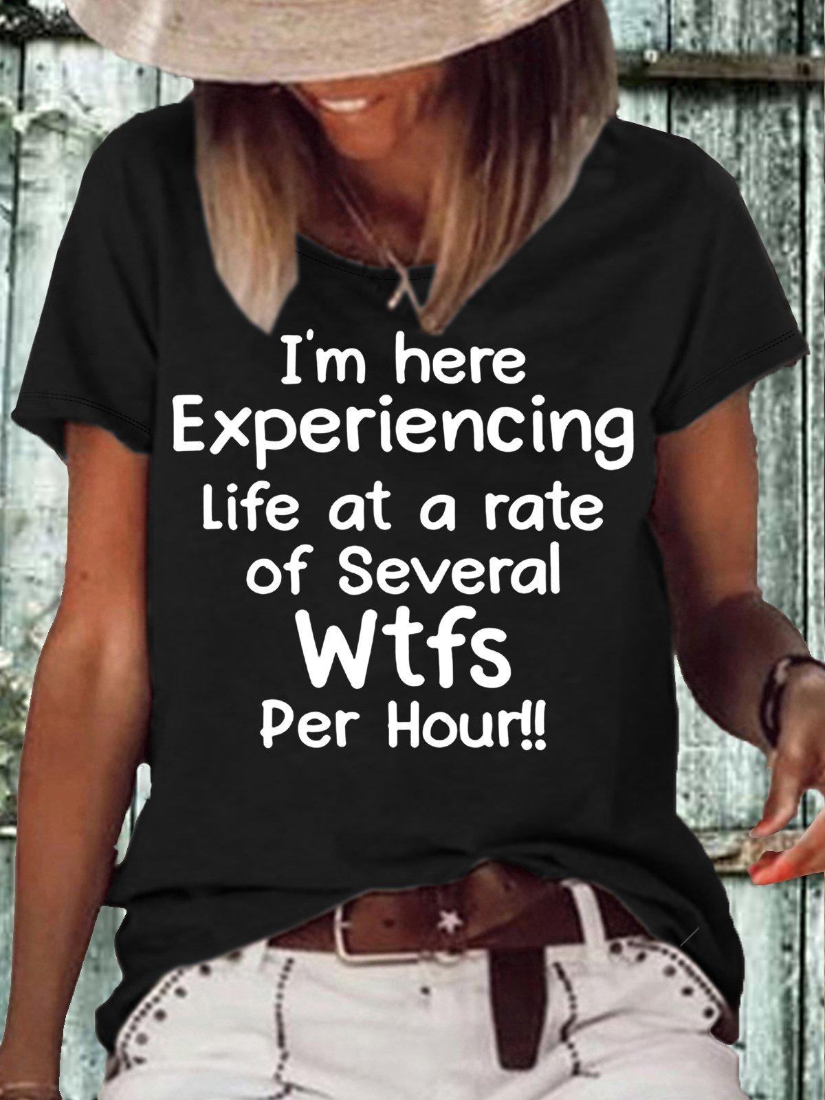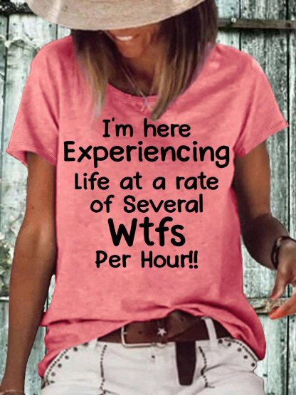Women's I'm Here Experiencing Life At A Rate of Several WTFs Per Hour Crew Neck Casual Letters T-Shirt