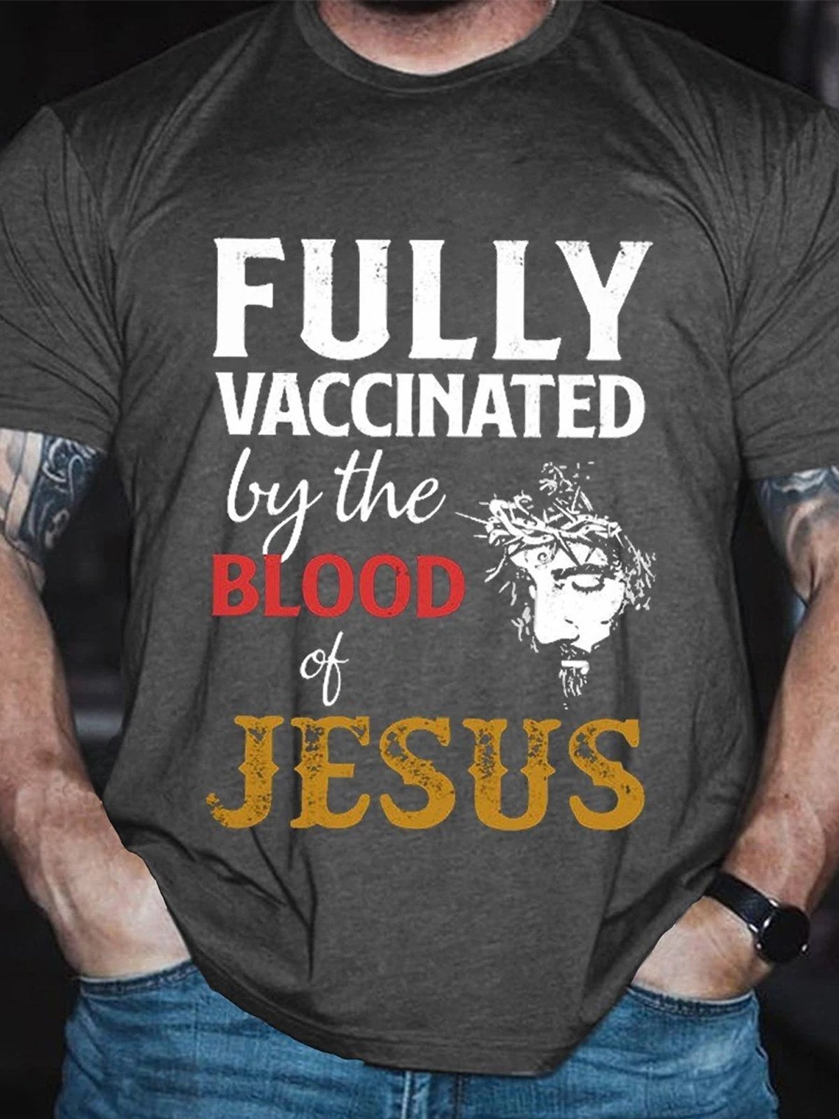 Fully Vaccinated By The Blood Of Jesus Casual Short Sleeve Crew Neck Short sleeve T-shirt