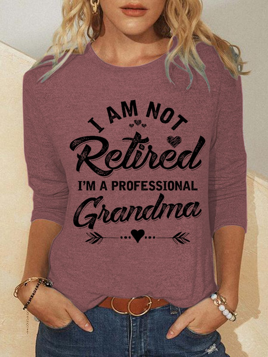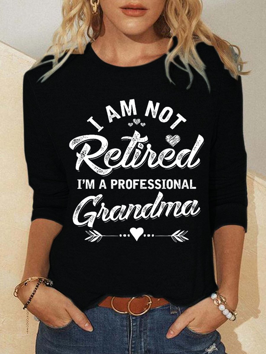 Funny Women I Am Not Retired I Am A Professional Grandma Text Letters Long Sleeve Tops+