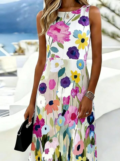 Loose Floral Elegant Crew Neck Dress With No