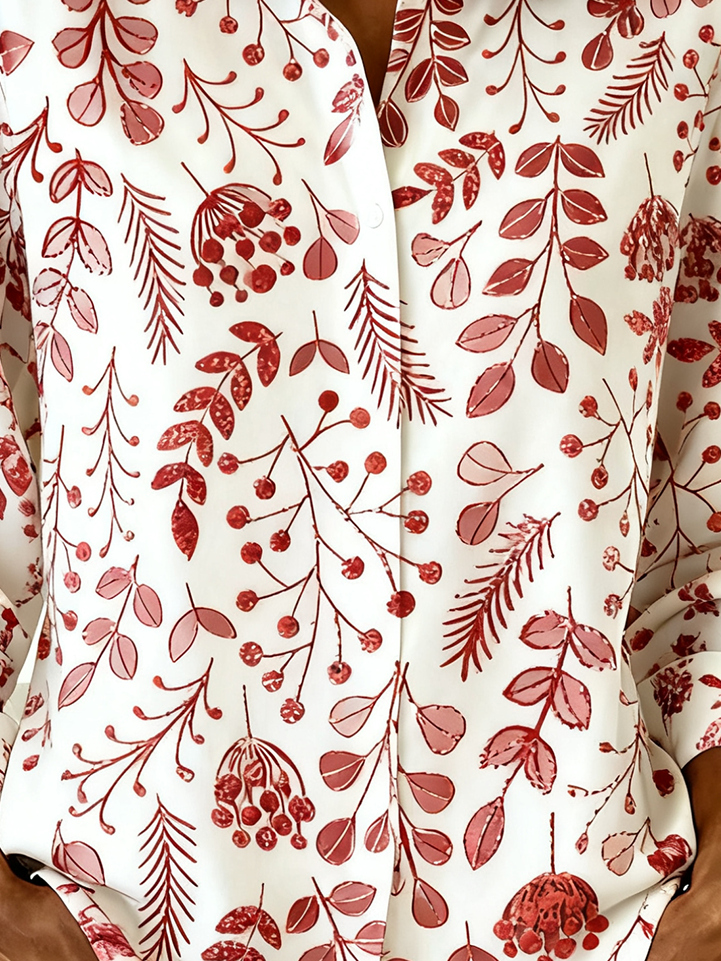 Shirt Collar Botanical Pattern Loose Vintage Shirt