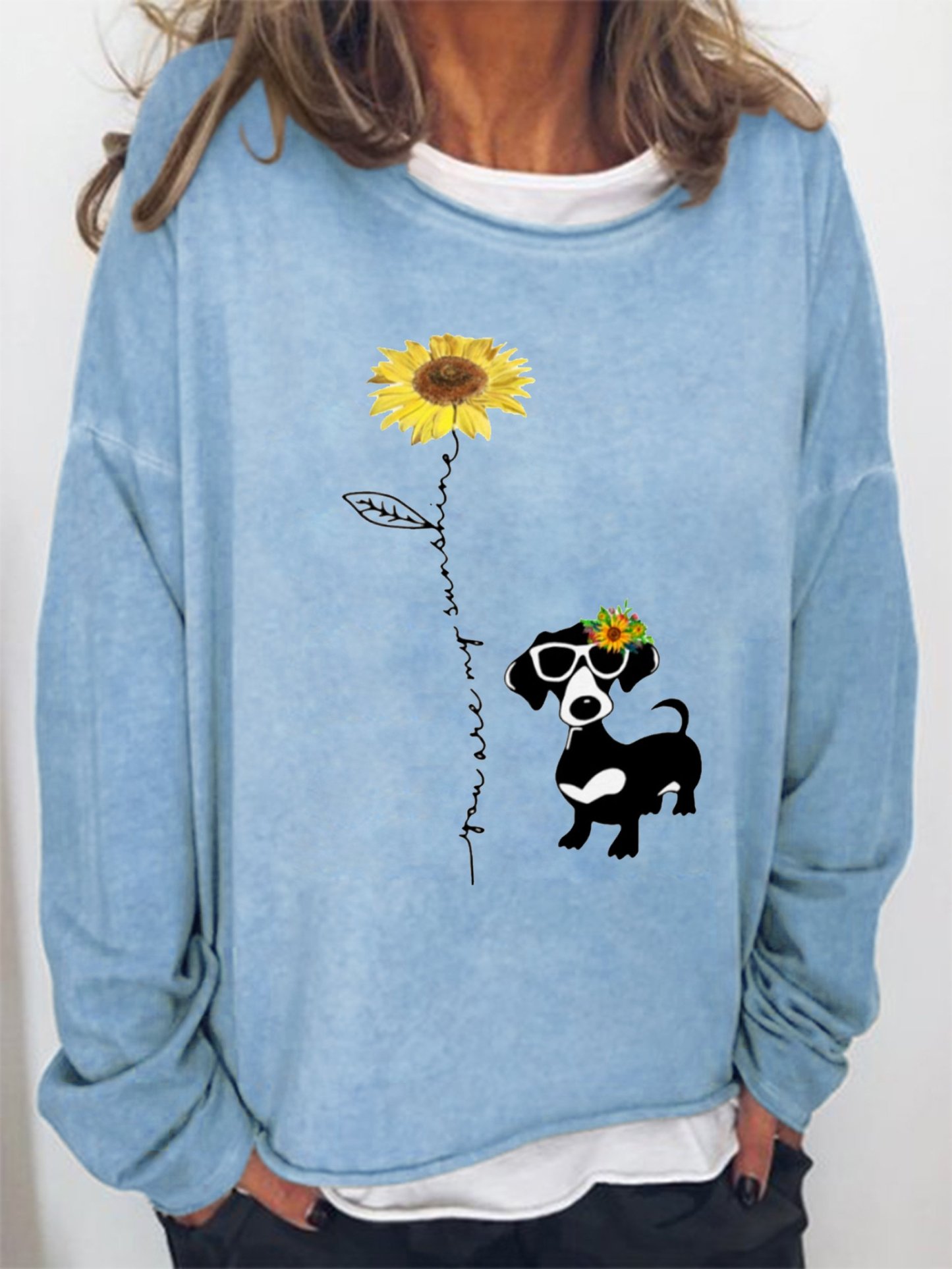 Sunflower Dog Print Round Neck Long Sleeve Sweatshirt