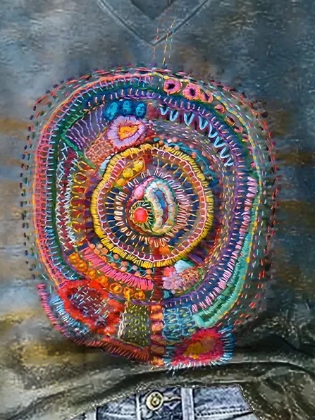 Vintage embroidery print art 3D fashion loose short sleeve V neck T-shirt