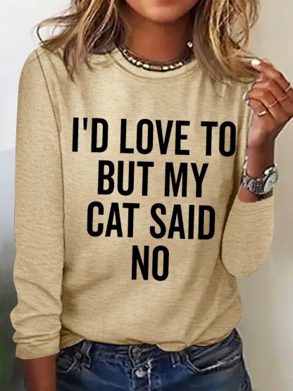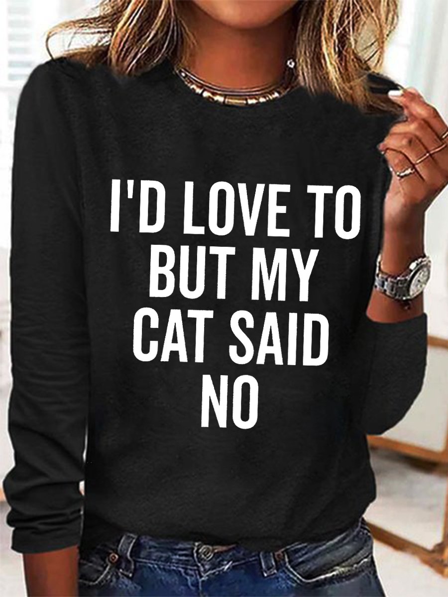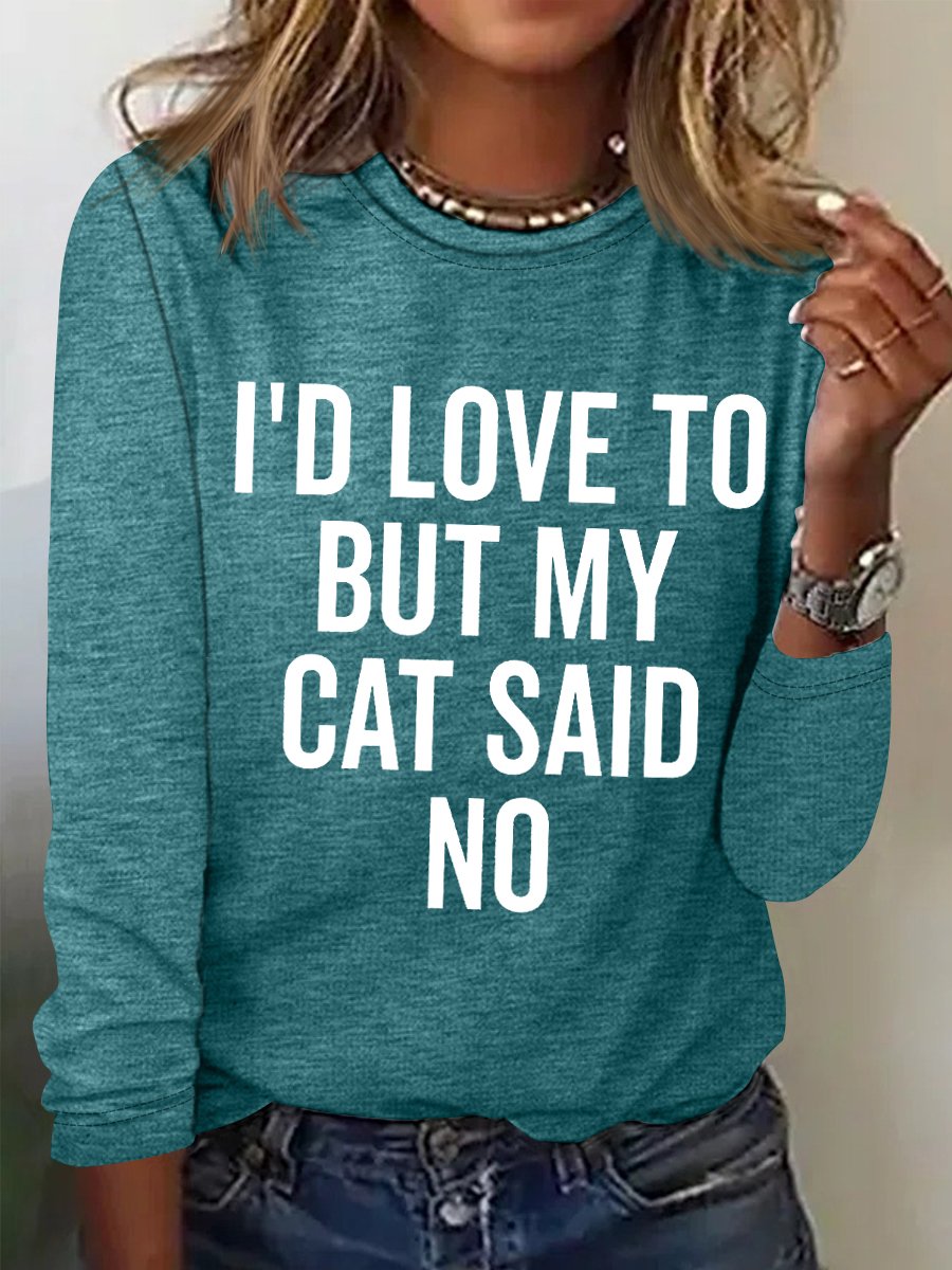 Women’s Funny Word I'd Love To But My Cat Said No Cotton-Blend Long Sleeve Top