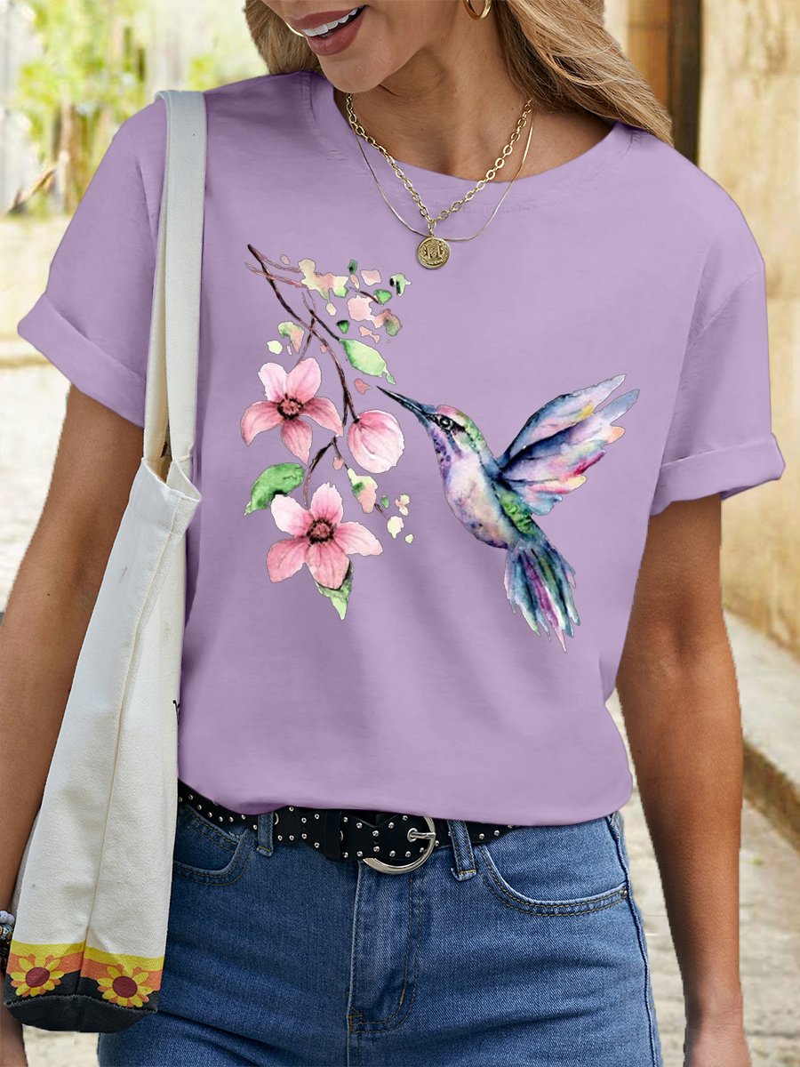 Women's Hummingbird Watercolor Nature Bird Lover Crew Neck Casual T-Shirt