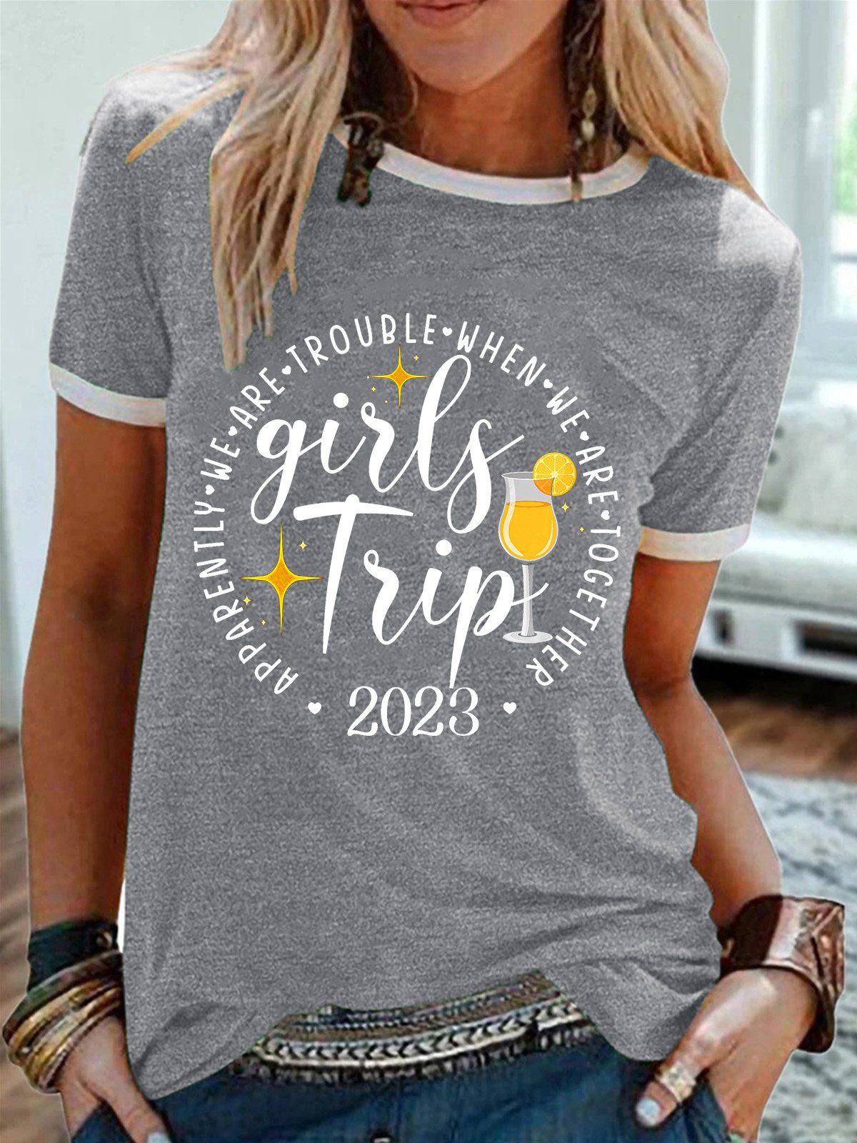 Women’s Girls Trip Apparently We Are Trouble When We Are Together Casual Crew Neck T-Shirt