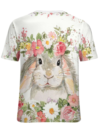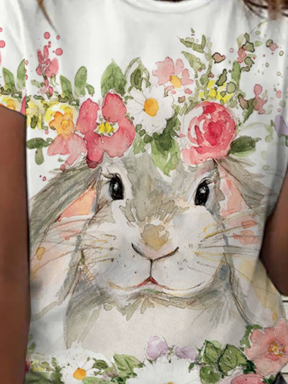Women's Floral Easter Rabbit Loose Simple Crew Neck T-Shirt