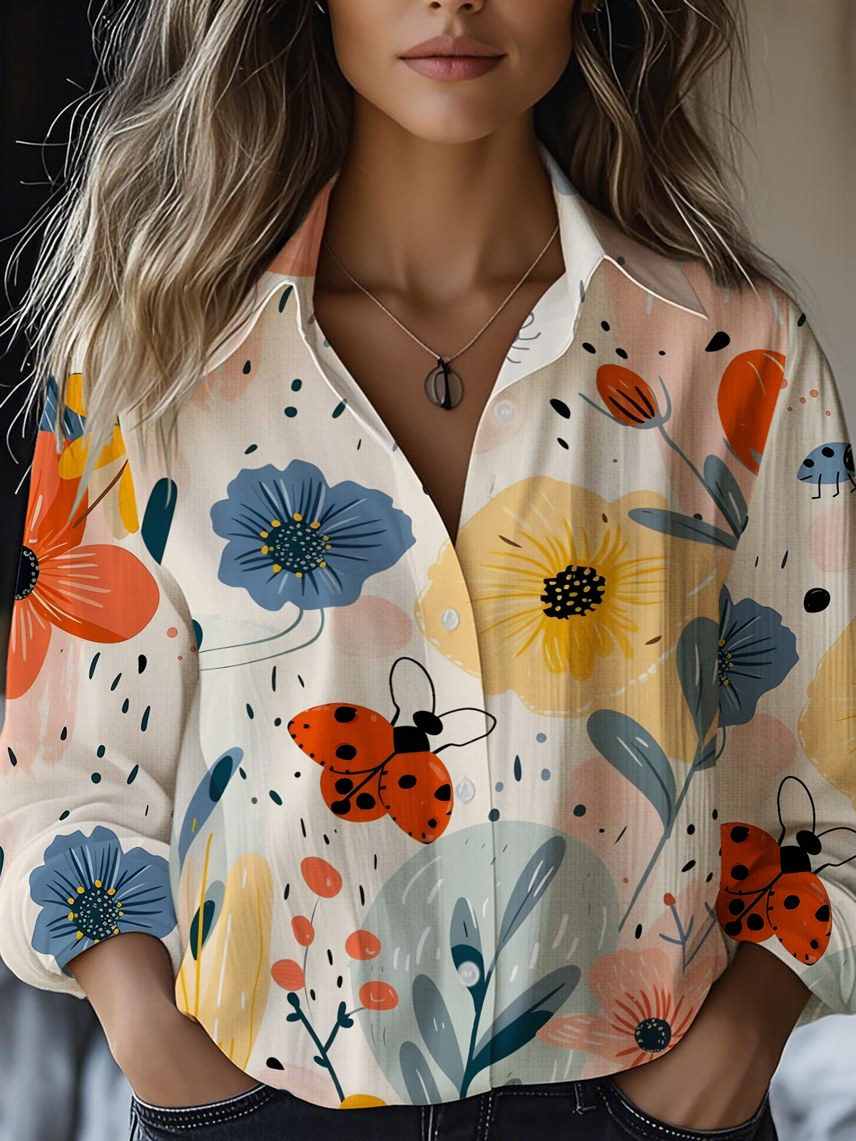 Women's Art Floral Print Casual Shirt